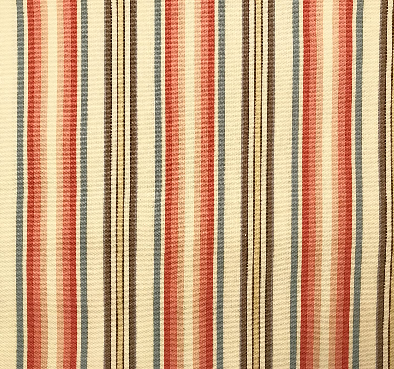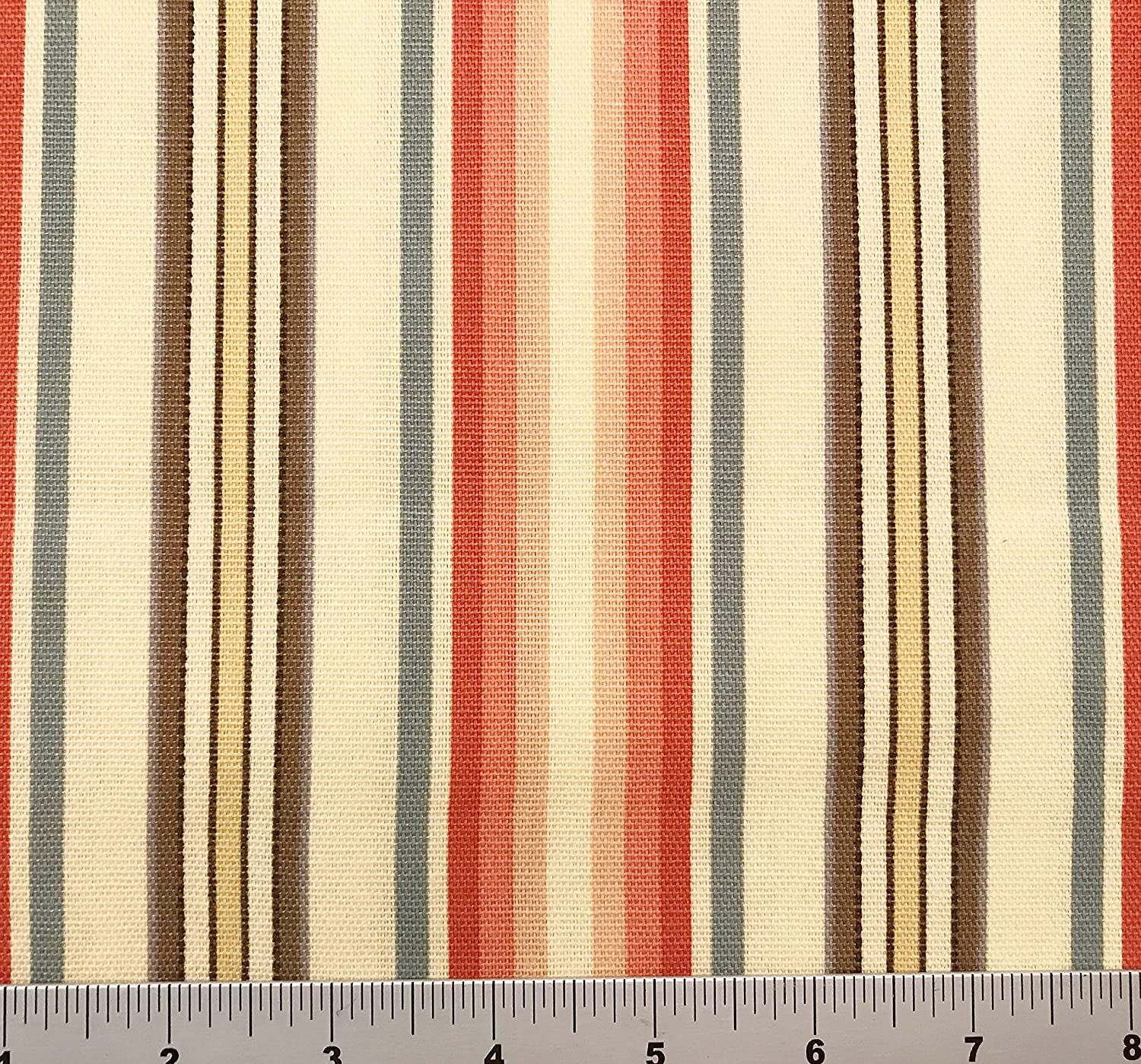 1 Yard x 44" Wide - Need More than 1 Yard? This Will Ship as ONE CONTINUOUS PIECE...BRAND NEW Store Stock...COCOA BROWN, RED, & DUSTY BLUE Stripes Alternate on a Cream Background...180 GSM (Grams Per Square Meter) Medium Weight Fabric - 100% Cotton Duck..Screen Printed on Cotton Duck; this Versatile Medium Weight Fabric is Perfect for Window Accents (Draperies, Valances, Curtains and Swags), Accent Pillows, Duvet Covers and Upholstery & More...You Can Create Handbags, Tote Bags, Aprons, too!...The Only Limit is Your Imagination