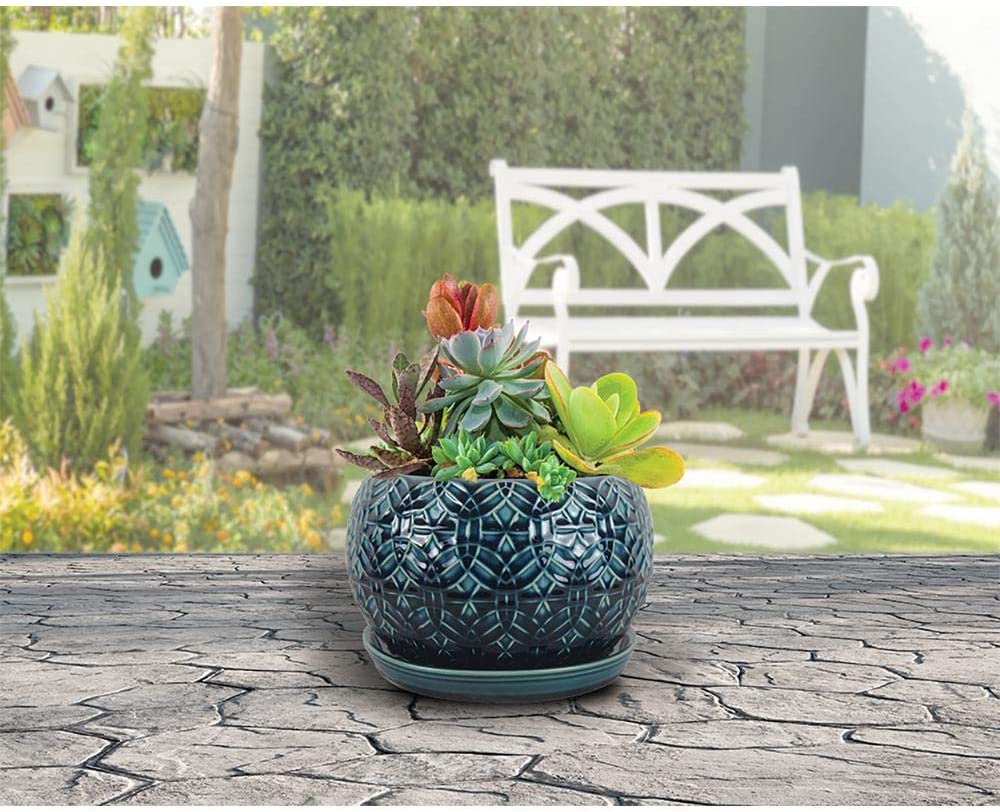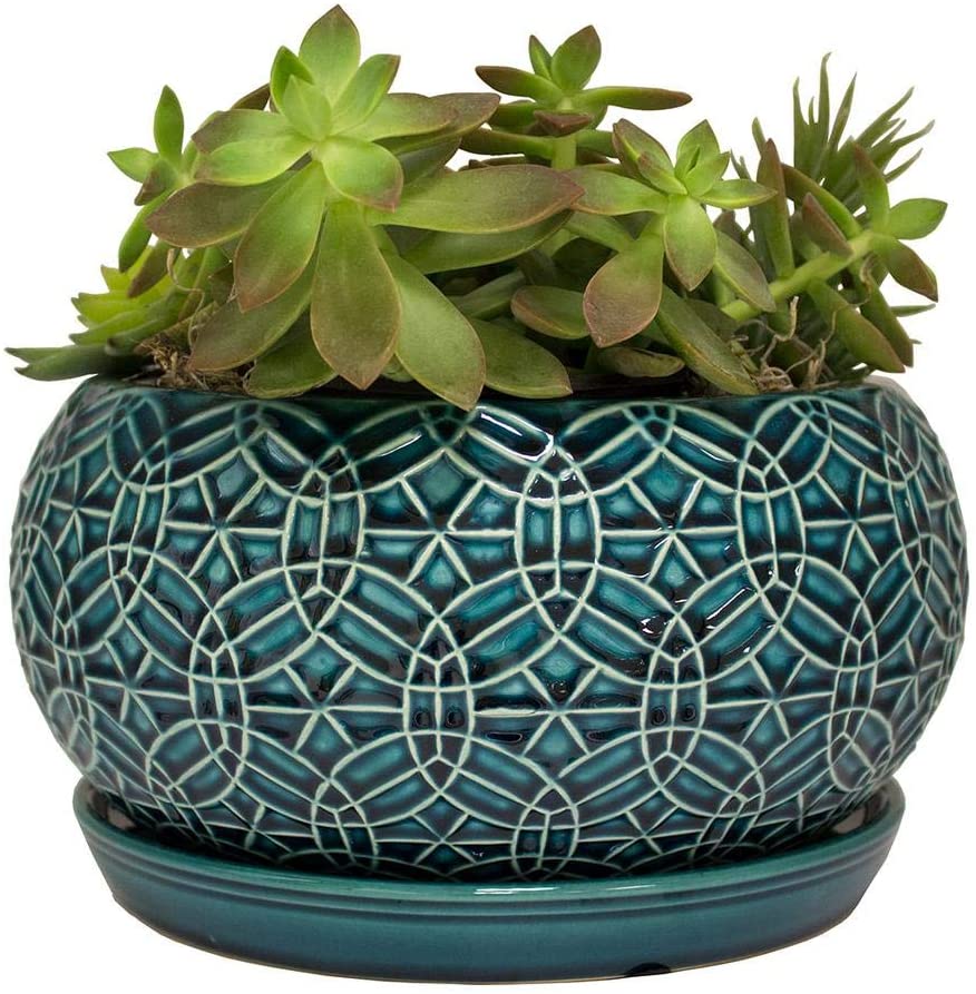 10 in. Dia. Ceramic Crackle Blue Rivage Bowl