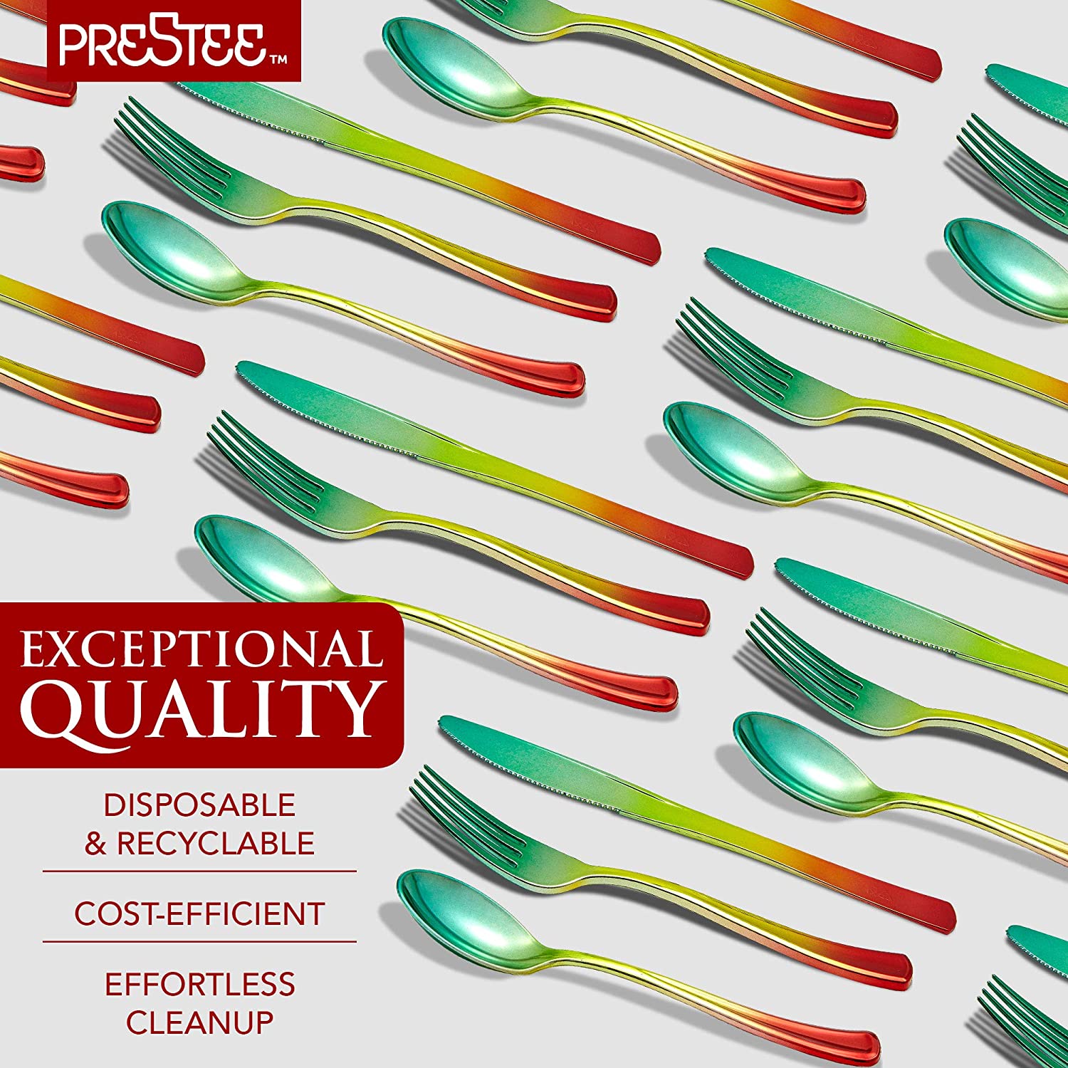 - BEAUTIFULLY ENHANCE YOUR TABLE! - Elevate your serving and display presentation with this beautifully rainbow heavy weight plastic cutlery set! Instantly upgrade the look and feel of your wedding reception, banquet, and other catered event with this shiny rainbow set!