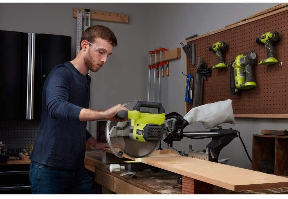 RYOBI introduces the 15 Amp 10 in. Sliding Compound Miter Saw. This saw features a 15 Amp, 4,600 RPM motor and has a 12 in. crosscut capacity. The LED Cutline Indicator and work-light illuminate materials to help improve the accuracy of the cut and visibility. The extended miter range from 47° left and right provides versatility for all DIY and professional projects by accommodating a wide variety of cuts. Backed by the RYOBI 3-Year Manufacturer's Warranty, the 15 Amp 10 in. Sliding Compound Miter Saw includes an LED Cutline Indicator, a 40-tooth carbide-tipped blade, table extensions, a work clamp, a blade wrench, a dust bag, and an operator's manual.