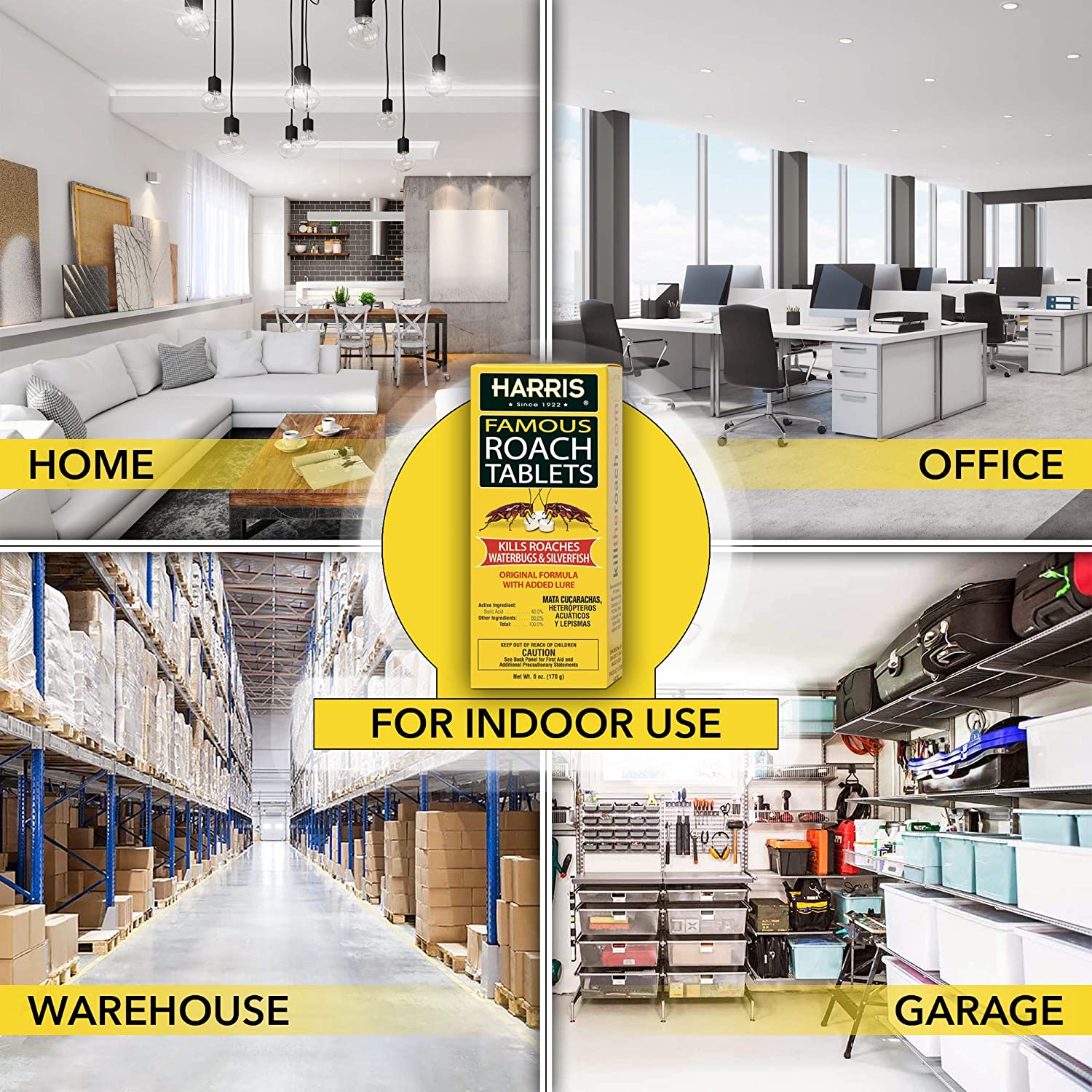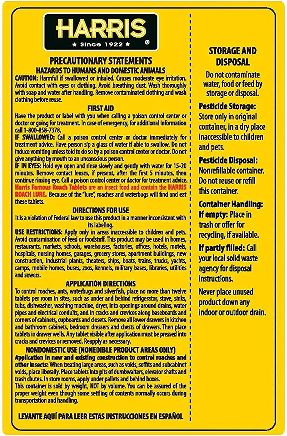 Harris Famous Boric Acid Roach Tablets formula with added lure, kills Roaches, Waterbugs & Silverfish. Just place tablets in out-of-the-way areas where roaches travel and roaches will find them. One box can treat an entire house, making it one of the most efficient and cost-effective ways to kill a roach.