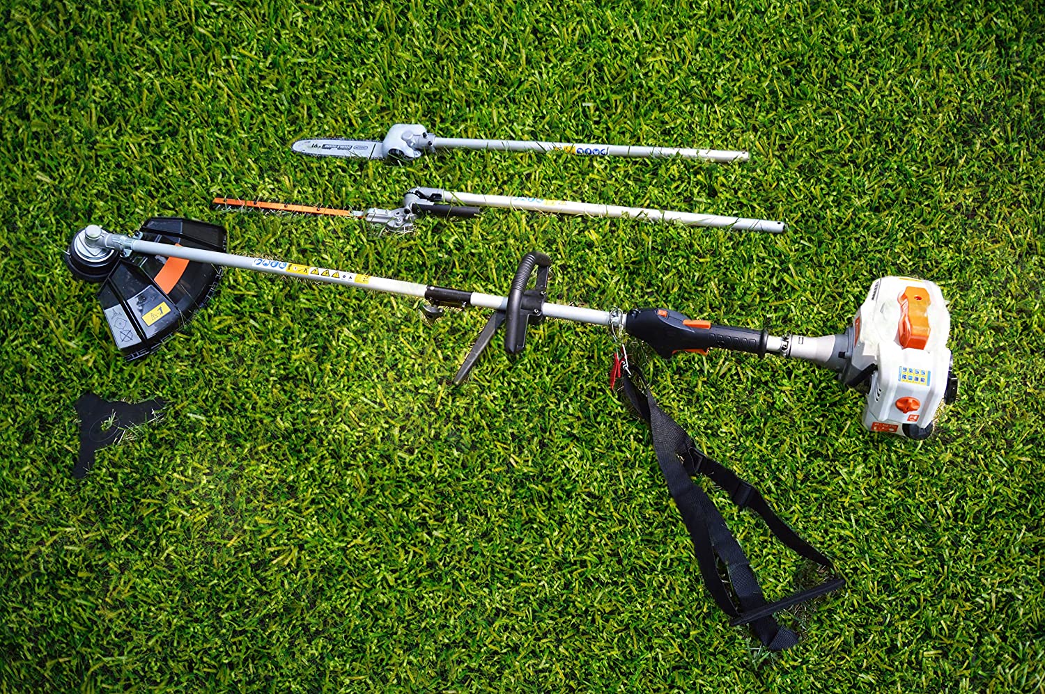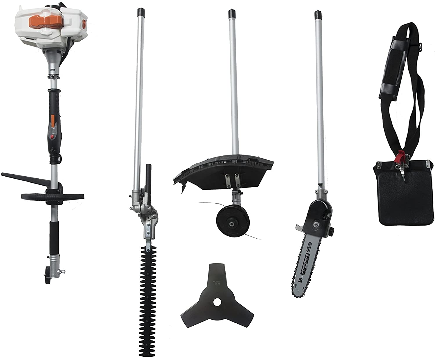 - 4 TOOLS IN 1 - Quickly convert the unit into a string trimmer, brush cutter, hedge trimmer or pole saw. Universal attachment connection