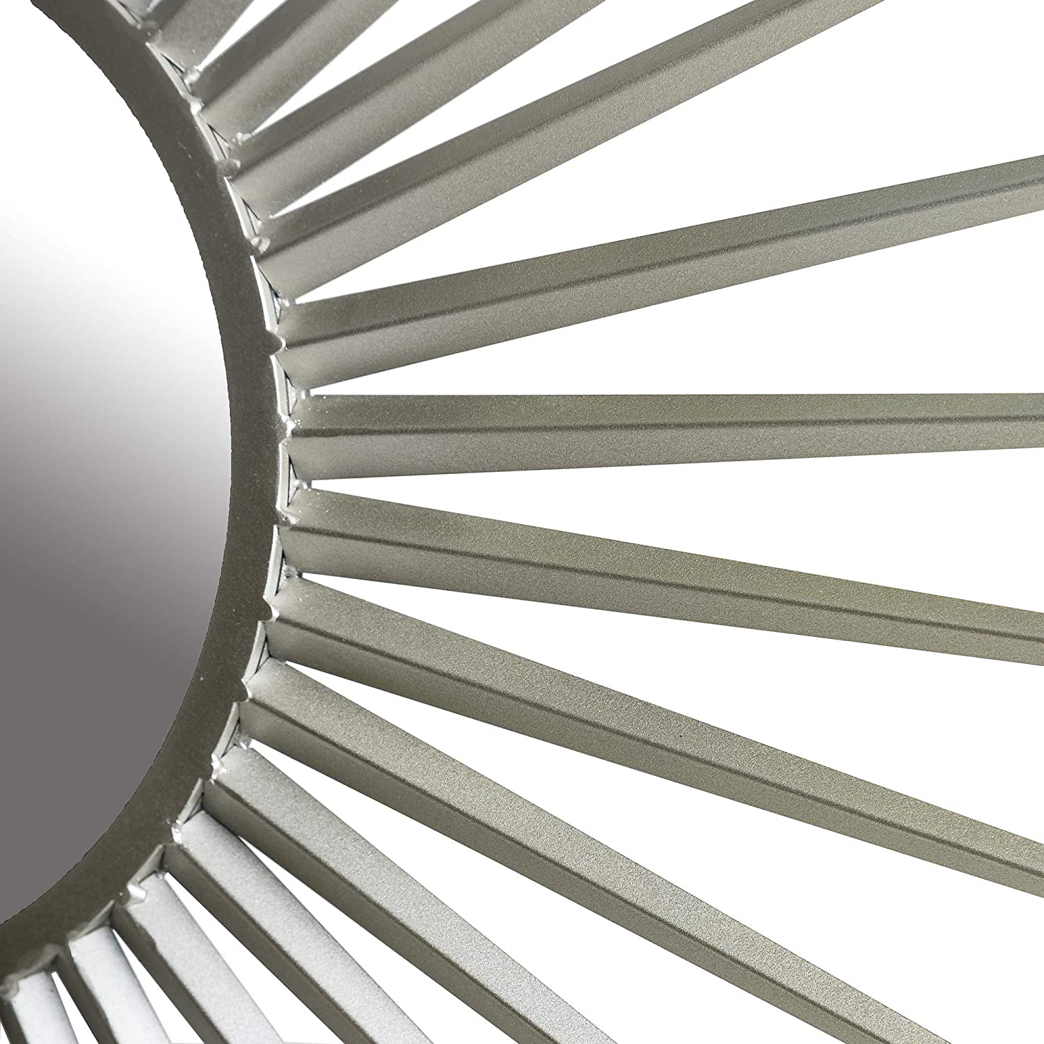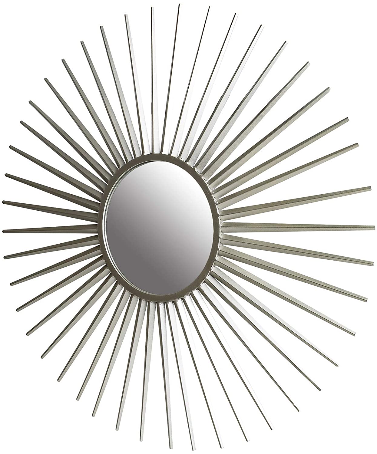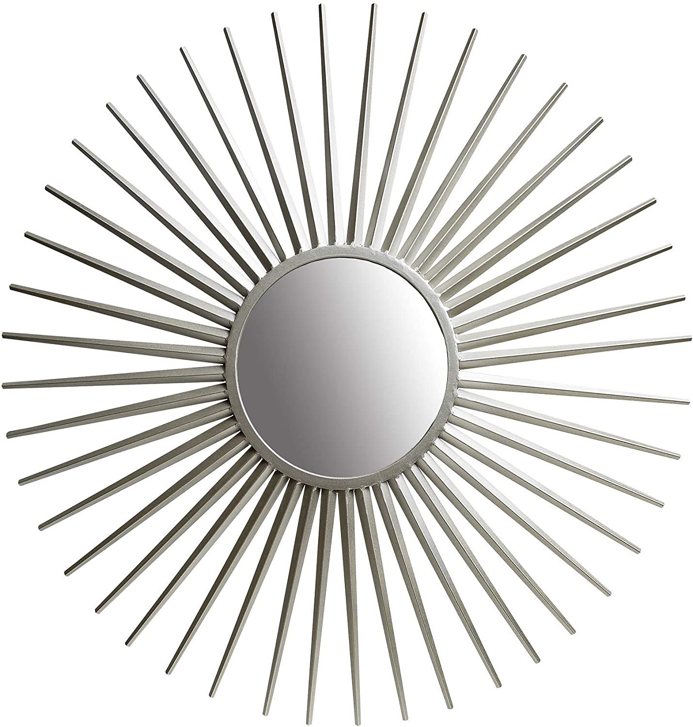 Add a clean modern element to your decor with this 36" Silver Sunray Wall Accent Mirror. Inspired by the 1960's, this mirror adds a modern twist to a classic retro style. It measures 36 inches all around and the reflective surface measures 10. 75 inches. Hang it securely to any wall with industrial hangers on the back. Unique enough to add as an accent piece to your midcentury decor, yet large enough to make for a focal point above the mantel. Mirrors provide the illusion of a larger space while also adding bright reflective shine. This mirror is no exception with it's playful yet contemporary design.