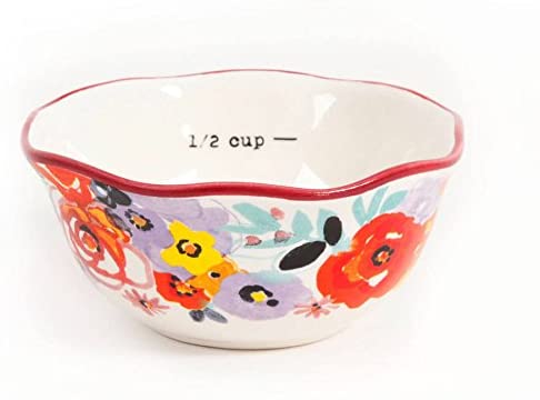 Favorite meals, snacks and desserts can be created with efficiency and ease using The Pioneer Woman Flea Market 5-Piece Prep Set, 4-Piece Measuring Bowls. The set's durable stoneware composition, along with its assorted hand-painted designs makes it an excellent choice for any home cook. The cookware measuring cups make an ideal addition to all of your kitchen and cooking needs. It also makes a wonderful gift for you or for any special friend for a wedding or house-warming occasion.