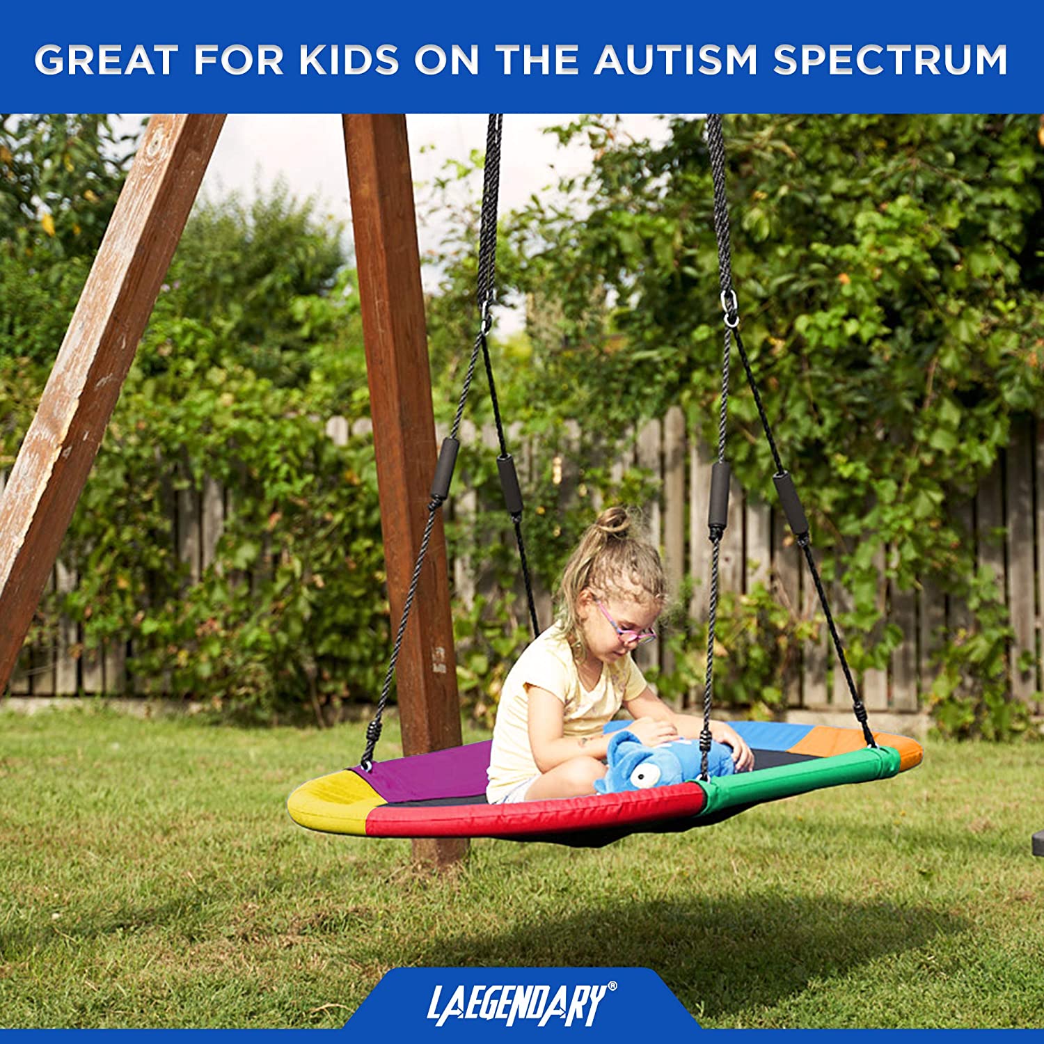 - 𝗠𝗔𝗞𝗘𝗦 𝗔 𝗣𝗘𝗥𝗙𝗘𝗖𝗧 𝗕𝗜𝗥𝗧𝗛𝗗𝗔𝗬 𝗚𝗜𝗙𝗧. If you are looking for a great gift that has that extra cool and exciting wow factor, then you will love our LAEGENDARY glider toddler swing. A gift of play for boys or girls of any age, to lure them away from the TV and PC, with a bonus: the ease with which will go up. It can also be used as a hammock autism swing for children. A great way to calm them, put them to sleep and give them the necessary sensory input they need