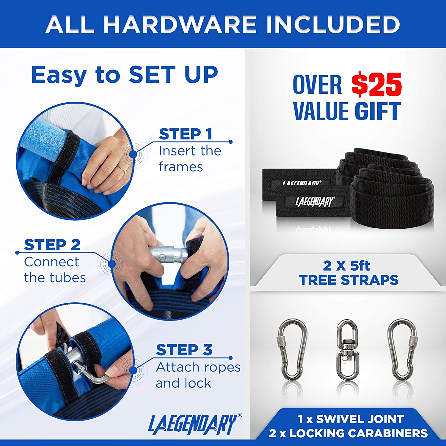 ALL HANGING HARDWARE INLCUDEDYou’ve been so excited to buy a tree swing and you finally received it – it’s in your hands. So why spoil the excitement in order to run to the store to buy the swing set accessories? With the LAEGENDARY swings you get a COMPLETE TREE SWING HANGING KIT. Everything you need to get your swing up and running it’s in the box: 2 carabiners, 1 swivel, 2 tree straps, nuts, bolts, washers, wrench. |
