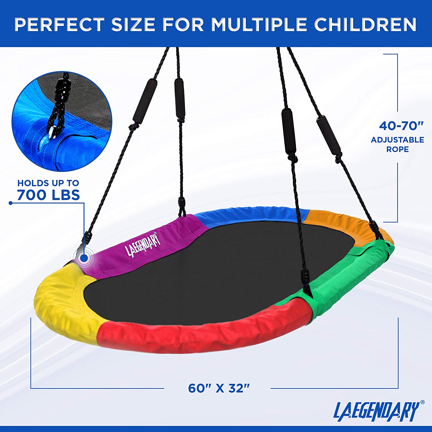- 𝗦𝗧𝗨𝗥𝗗𝗬, 𝗗𝗨𝗥𝗔𝗕𝗟𝗘 𝗔𝗡𝗗 𝗦𝗔𝗙𝗘. Our popular oval swing set is made of the strong and safe materials and can hold up to 700 lbs. We designed the portable outdoor swing with safety in mind. Foam handles for a safer,better grip, thicker foam padding for added protection and comfort, and reinforced seat stitching for more durability. You get a COMPLETE kids tree swing HANGING KIT so the excitement of receiving the yard swing doesn’t have to stop to run to a hardware store