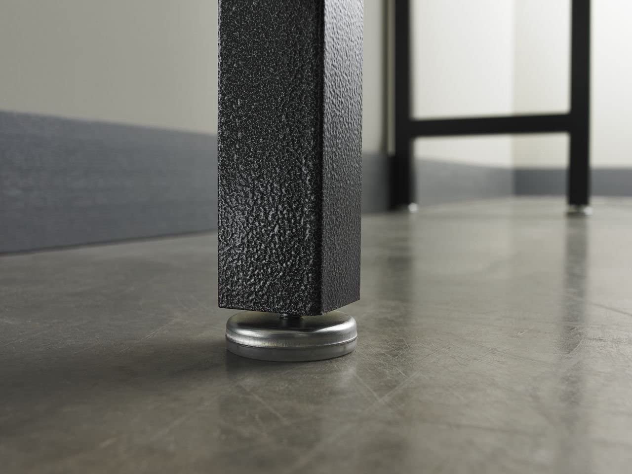 - Lifetime limited warranty on adjustable legs. The solid hardwood top is treated with a UV-cured coating that helps resist staining from typical garage chemicals