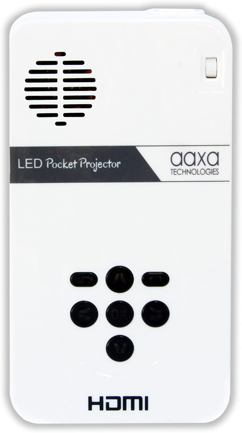 AAXA Technologies KP-101-01 AAXA LED Pico Micro Video Projector - Pocket Size Portable Mobile Mini Projector with mini-HDMI, built-in Media Player & Speakers, 3.5mm Aux Out, Micro SD/USB readers and 80 Min Lithium-Ion Battery