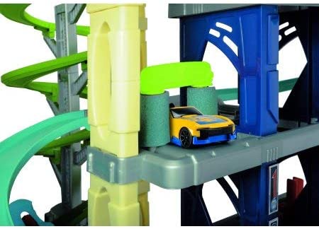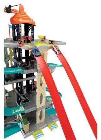 Explore the new and innovative Ultimate Dino City Garage from Adventure Force! Drive right into endless adventures and get to master the numerous features of the Ultimate Dino City Garage. Standing over 3 feet tall and storing up to 50 Die-Cast vehicles, this is the Ultimate Dino City Garage. Let your imagination take over and enjoy the various features, such as the car lift which takes your cars to all 5 parking decks. The multiple racing tracks may lead you through one or the other dangerous obstacle .The massive wrecking ball flying 3 feet above the ground. The huge garage set comes with two awesome light and sound features which can be activated by pushing the lever or simply driving through the gate. You can discover and loads of moving parts, such as the totally action-packed 360°degree crane that can lift your car or let a dangerous pterodactyl circle around the garage. The spiral track leads your cars down through the menacing jaw of a T-Rex, whilst the end of the double high-speed racing track is guarded by a fierce raptor. In addition to that you can find on each level small mechanical features like a gas station, repair station or a car wash. Invite your friends over and share your racing adventures. Including 5 diecast vehicles, 2.5 feet height, with multiple light and sound functions, 5 parking levels, working crane and elevator, double track race launcher, extra crane lifting tray and dino snapping feature.Adventure force ultimate dino city garage
