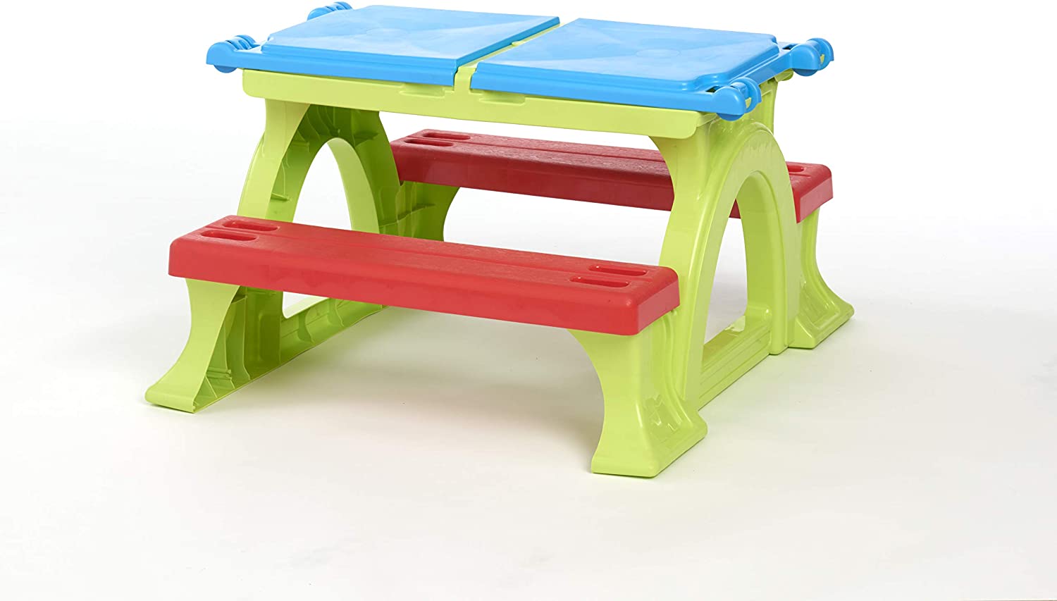- Picnic table materials: 100% colorful durable polypropylene. It's great fun for indoor or outdoor play.