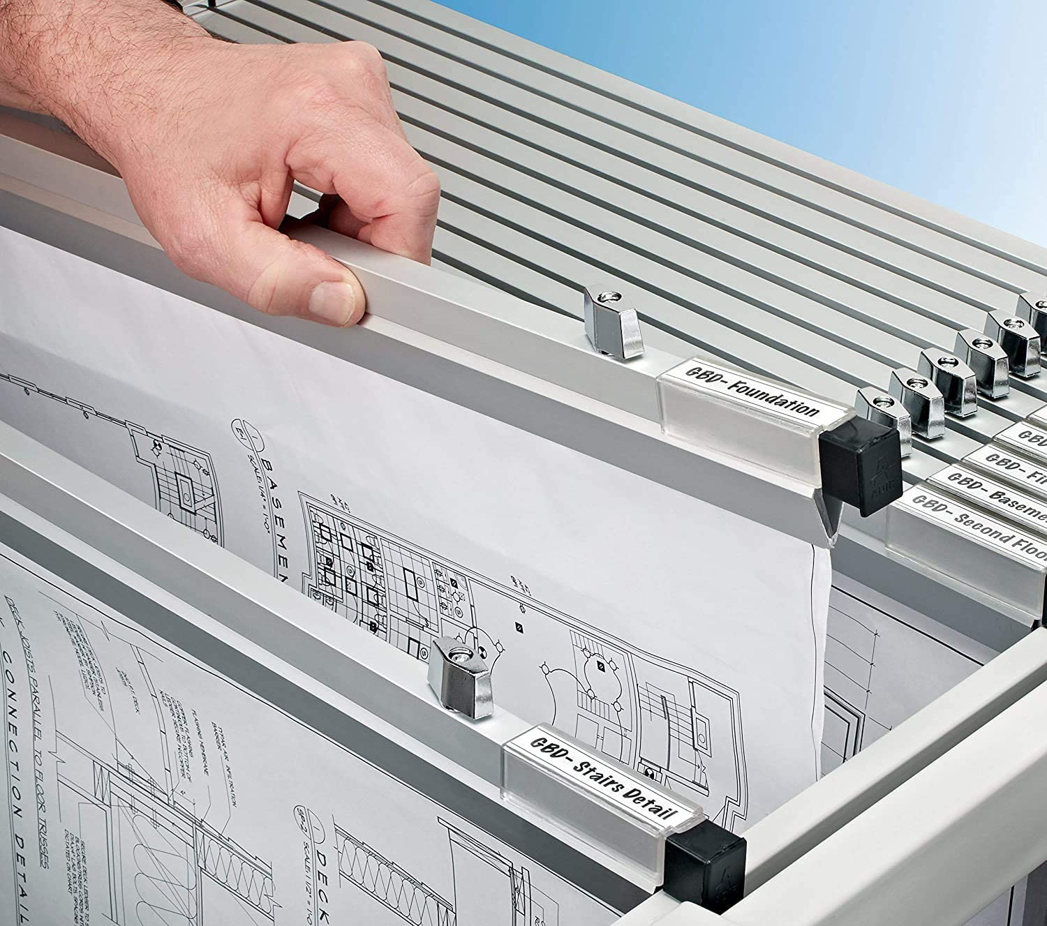 This6-pack of Adir Corp. 24” Blueprint File Hanging Clampsis a perfect way to organize important files. Made specifically forblueprints, plan drawings, layouts, maps and other large-format documents, they are designed to hold thoselarge documents safely and securely.