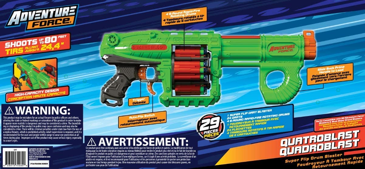 Adventure Force Quatroblast Superflip Quad-Drum Dart Blaster Features A Quad Rotation System with Four Rotating Cylinder-Drums, Shoots Upto 80 Feet, for Ages 8+