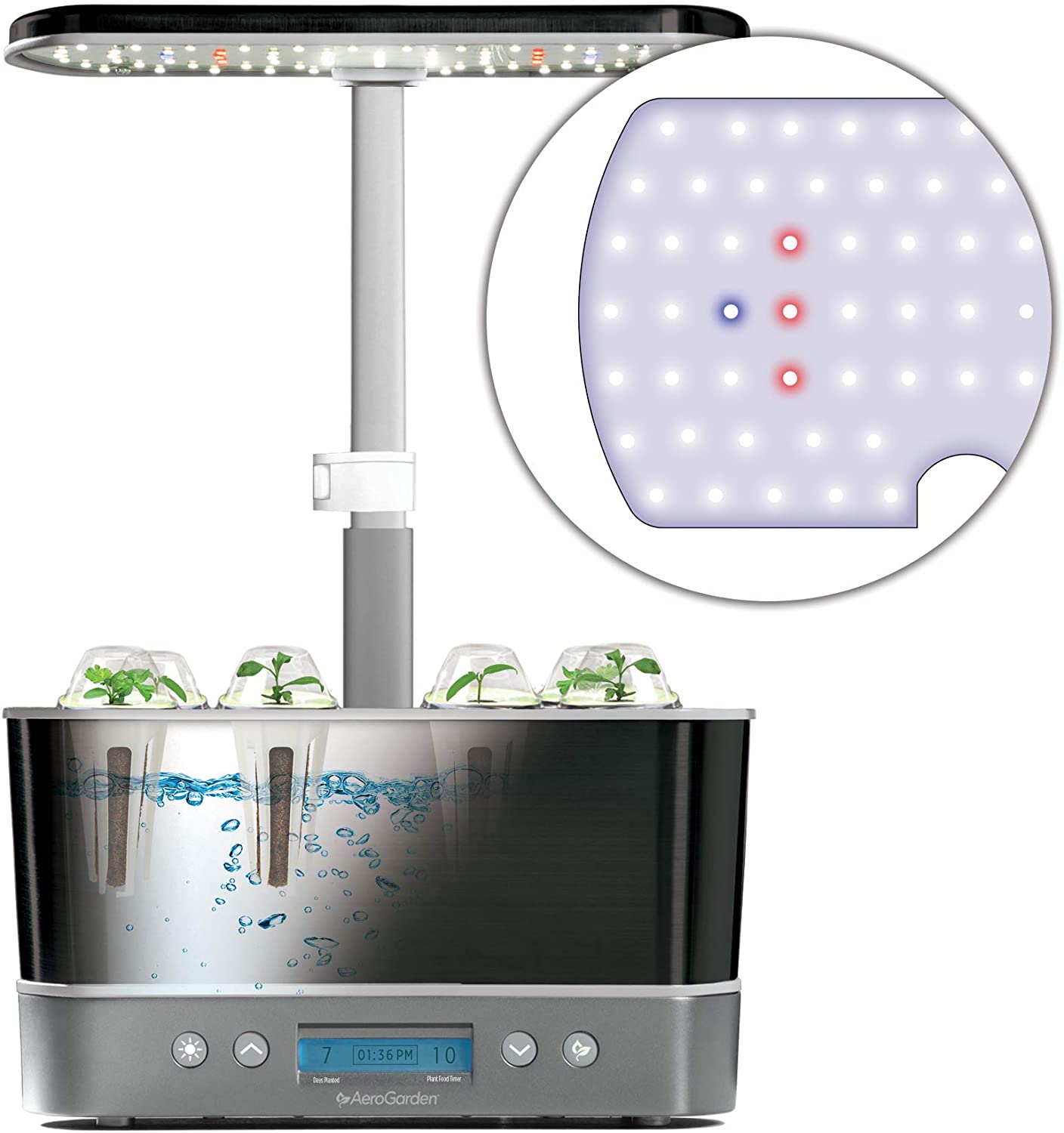 The AeroGarden Harvest Elite is a simple, beautifully designed garden, versatile enough to fit almost anywhere, but perfect for the best room in the house… your kitchen. It’s no secret homegrown veggies just taste better, and the Harvest Elite will inspire you to discover the flavor of fresh no matter the season. Perfect for beginners and experienced growers alike, the Harvest Elite has room for six different plants. Grow an endless variety of herbs, vegetables, salad greens, or flowers to enhance your food, drinks, home and life. With just a little counter space, the included non-GMO seed pod kit, and your own creativity, you’ll be enjoying the delicious taste that only comes from homegrown herbs and veggies in no time. It’s the perfect complement to any kitchen. Just fill the garden with water, drop in the pre-seeded pods, and add a little bit of our all natural liquid plant food. The Harvest Elite does the rest. Specially tuned, full-spectrum LEDs mimic the optimum effects of sunlight. Your plants will naturally grow faster and there’s no pesticides or herbicides needed, and no soil required. Built-in sensors automatically turn the lights on and off each day, and let you know when to feed and add water – so there’s no more guesswork. It’s truly that easy. We guarantee it.