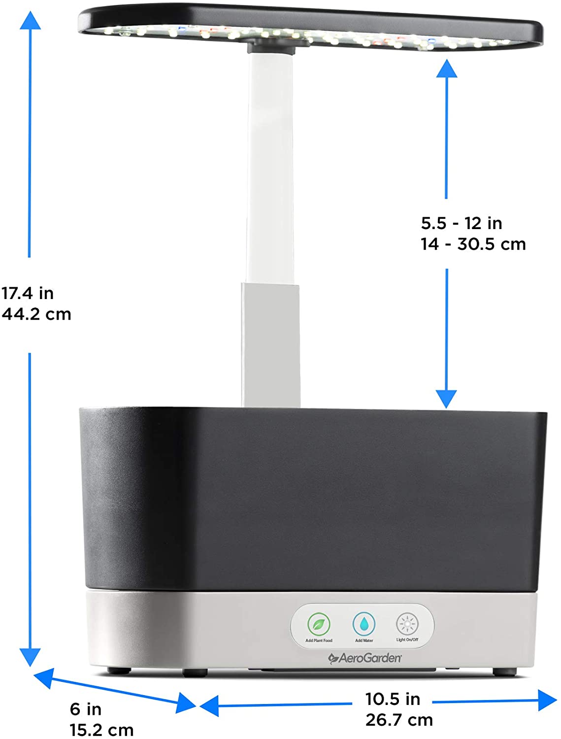 The AeroGarden Harvest is a simple, beautifully designed garden, versatile enough to fit almost anywhere, but perfect for the best room in the house your kitchen. The Harvest is a perfect gift for almost any occasion. Great for gift baskets, gift sets, birthday gifts, and both gifts for women and men. It’s no secret homegrown veggies just taste better, and the Harvest will inspire you to discover the flavor of fresh no matter the season. Perfect for beginners and experienced growers alike, the Harvest has room for six different plants. Grow an endless variety of herbs, vegetables, salad greens, or flowers to enhance your food, drinks, home and life. With just a little counter space, the included non GMO seed pod kit, and your own creativity, you’ll be enjoying the delicious taste that only comes from homegrown herbs and veggies in no time. It’s the perfect complement to any kitchen. Just fill the garden with water, drop in the pre seeded pods, and add a little bit of our all natural liquid plant food. The Harvest does the rest. Specially tuned, full spectrum LEDs mimic the optimum effects of sunlight. Your plants will naturally grow faster and there’s no pesticides or herbicides needed, and no soil required. Built in sensors automatically turn the lights on and off each day, and let you know when to feed and add water – so there’s no more guesswork. It’s truly that easy. We it.