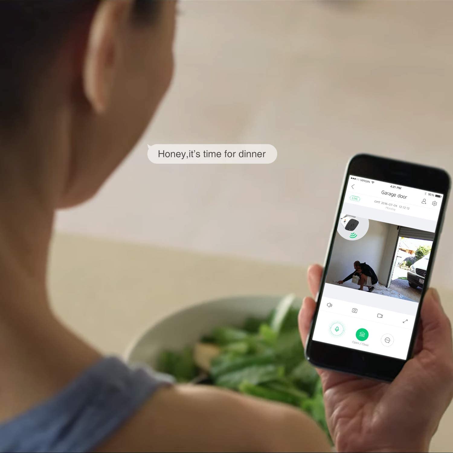 Interact with Your Garage Space· Talk through your Garager to the ones you care · Listen to what is going on in the garage space |