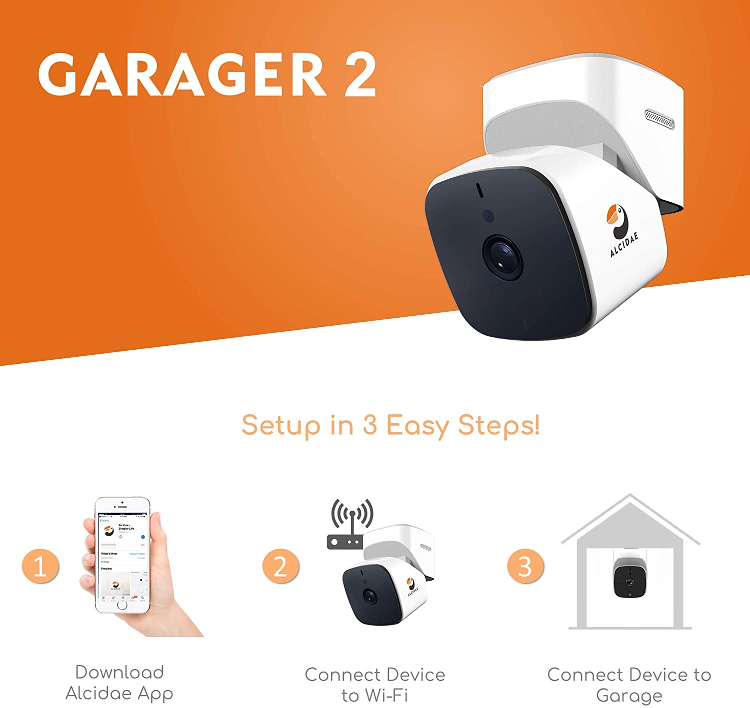 - [ Complete garage solution ] - Universal garage door opener remote and garage surveillance all in one. Operate your garage door from the Alcidae app, anywhere!