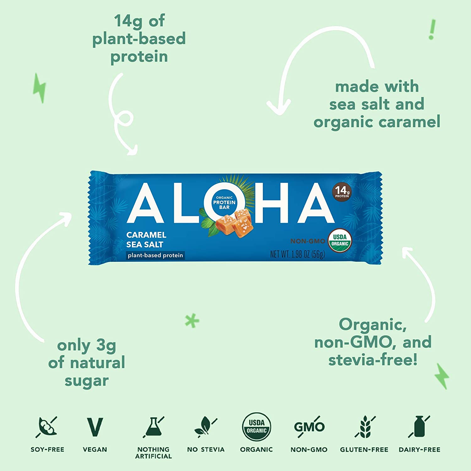 At ALOHA, we believe that plants are the ultimate source of nourishment, and that real foods should be really convenient. So when you’re looking for a great tasting, organic, plant-based protein boost, we’ve got you covered. ALOHA protein bars use simple, organic ingredients that are naturally packed with the tools your body needs to do its best: protein, iron, fiber, and healthy fats. With 14g clean protein and only 3g of natural sugar, ALOHA’s protein bars are the perfect, healthy snack to tide you over. Our thoughtfully selected, plant-based protein is sourced from a balanced mix of organic pumpkin seed and organic brown rice, to deliver steady energy that will carry you through the day without the dreaded sugar crash. ALOHA’s organic, plant-based products are vegan, non-GMO, gluten-free, soy-free, dairy-free (lactose-free), stevia-free, high protein, Kosher Certified and USDA certified organic. ALOHA checks the all the boxes, so you can enjoy a tasty, nutritious snack without hesitation. All of our protein bars and protein products are made free of artificial ingredients and free of sugar alcohols, because we know that what you eat and how you feel are intimately connected. ALOHA’s organic, plant-based Caramel Sea Salt protein bars use a short line of organic, whole-food ingredients that are delicious and self-explanatory: like real, organic caramel, organic roasted sunflower seeds, organic almond butter, and a dash of sea salt. The perfect protein bar for when you’re between meetings, warming up for the gym (or cooling down!), on the road, taking a pit-stop on your weekend cycle, or looking for an easy, nutritious option at home. The search for a healthy, satisfying, go-to snack is over: sit back and enjoy a great tasting, rejuvenating ALOHA protein bar.