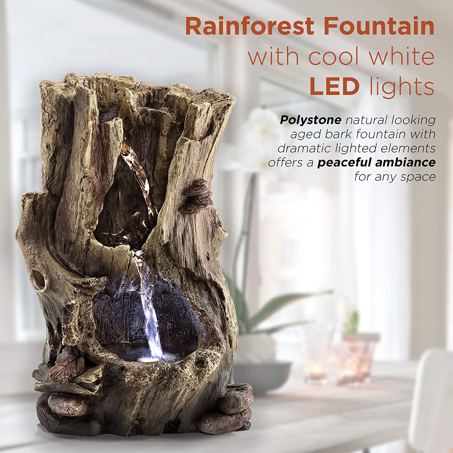 Alpine Corporation 11" Tall Indoor Rainforest Tabletop Fountain with LED Lights