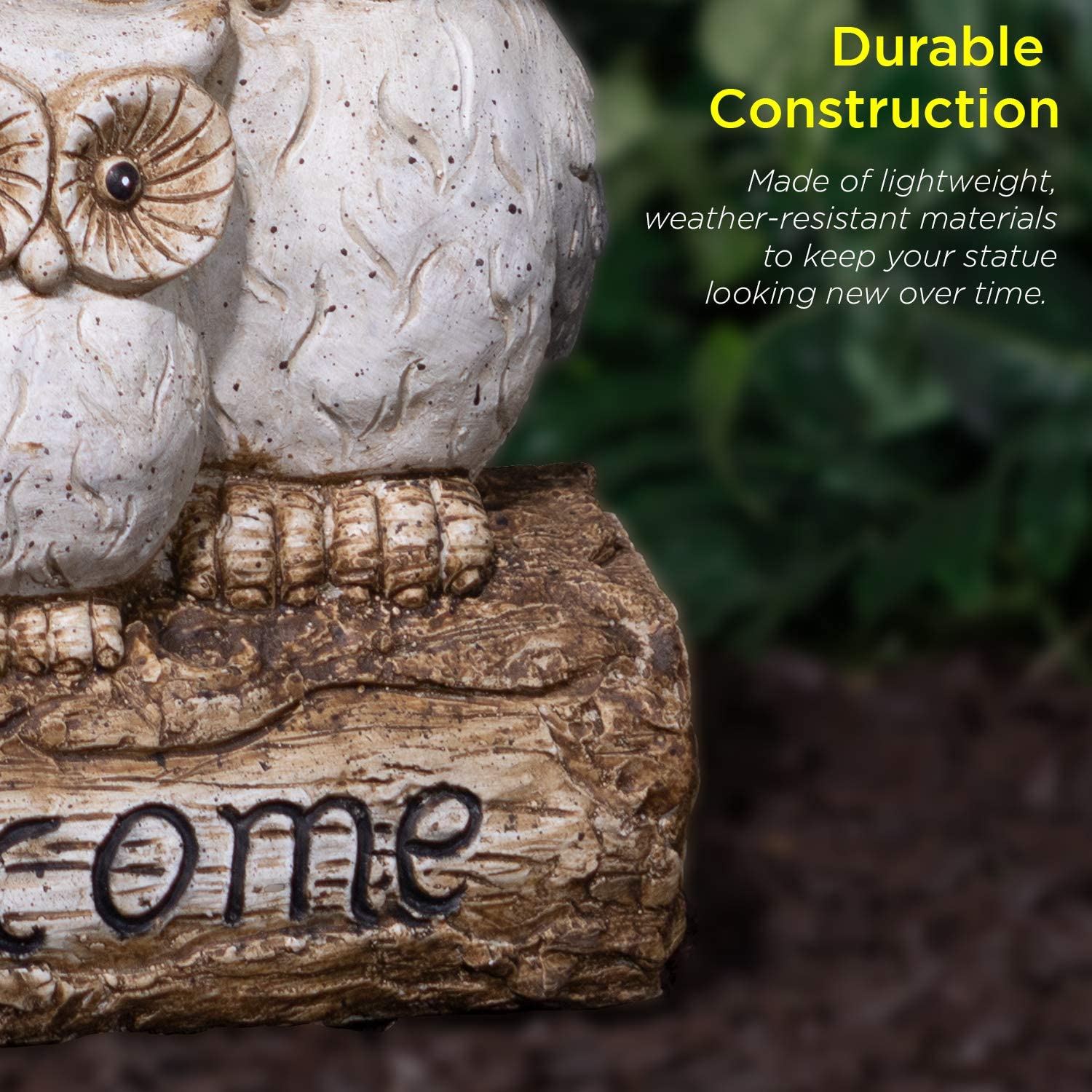 • OUTDOOR DECOR: Welcome statue features an owl family powered by solar energy to offer your guests a warm welcome, and provides a unique and decorative addition to your home's exterior décor