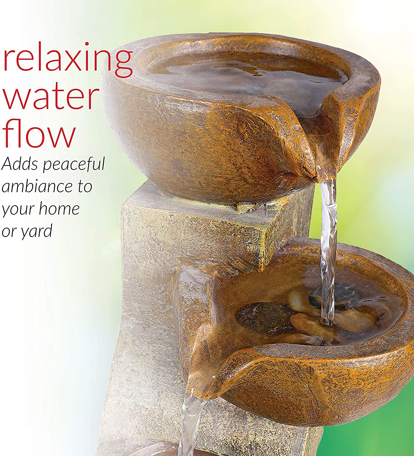 • RELAXING WATER FLOW: Water cascades down through pots to mimic the sounds of a real waterfall, adding peaceful ambiance to your home or yard
