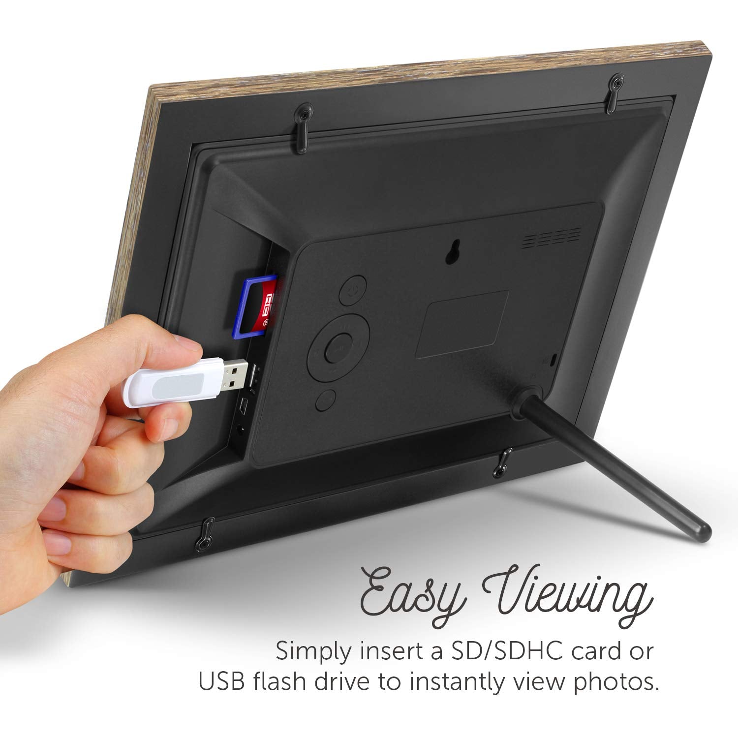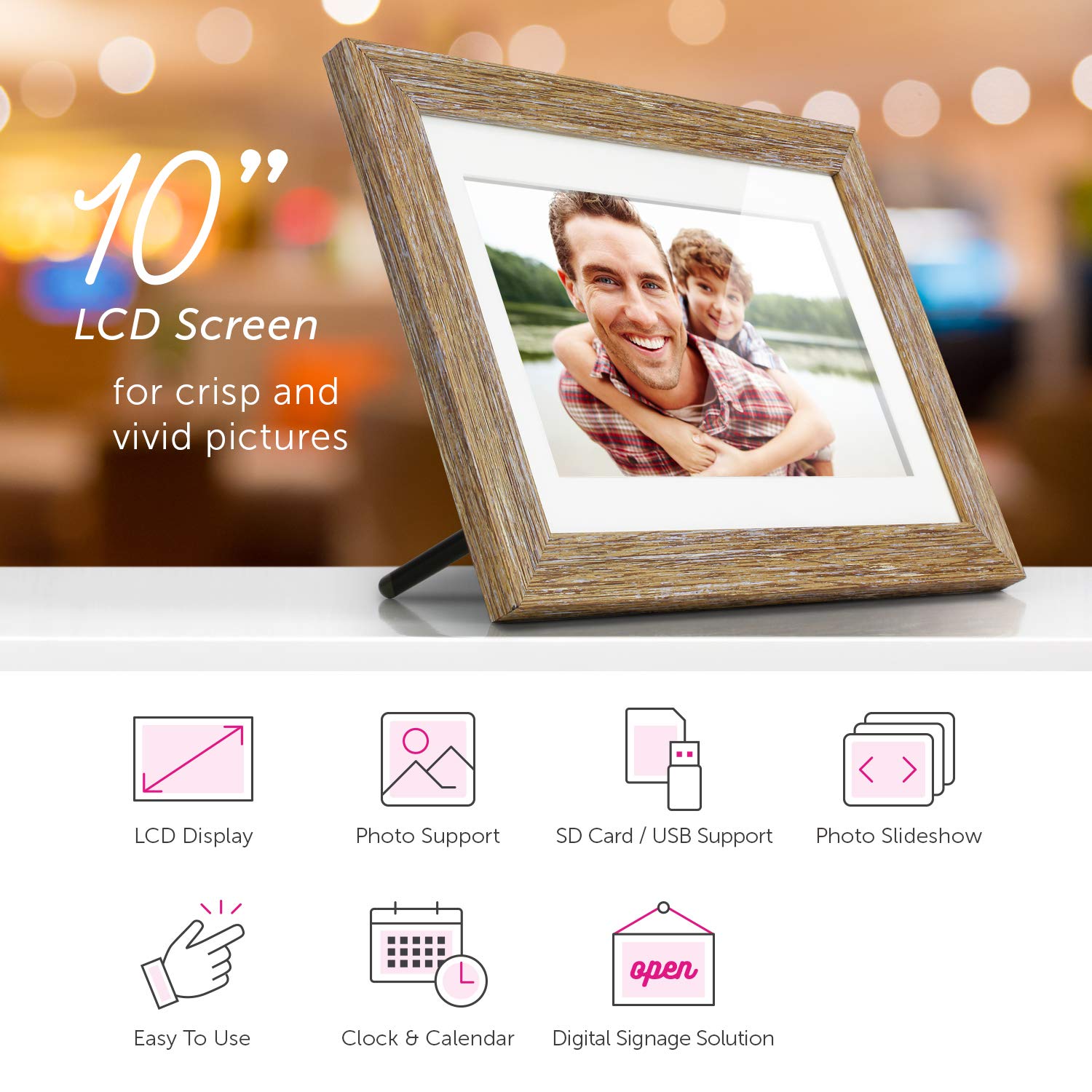 Aluratek (ADPFD10F) 10 inch Digital Photo Frame with Auto Slideshow, Distressed Wood Border, 1024 x 600, 16: 9 Aspect Ratio, Wall Mountable