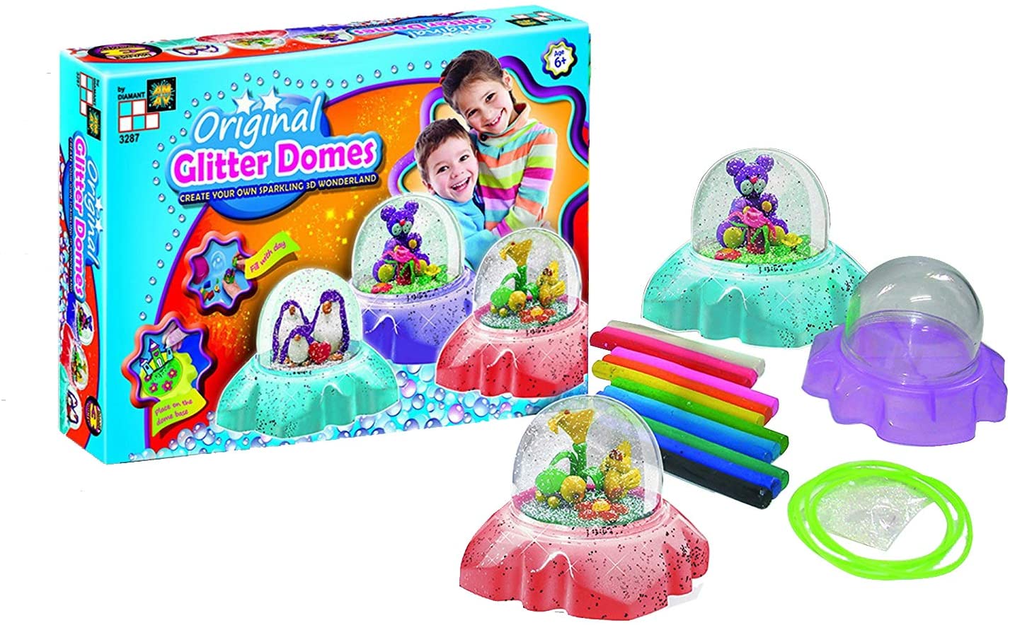 create snowmen with our eight colors of molding clay, add glitter and water, and watch it come to life!amav glitter dome comes equipped with everything you need to make two beautiful sparkly water domes.What’ s in the box? 2 domes and basesglittermolding clay in 8 colorsinstructions