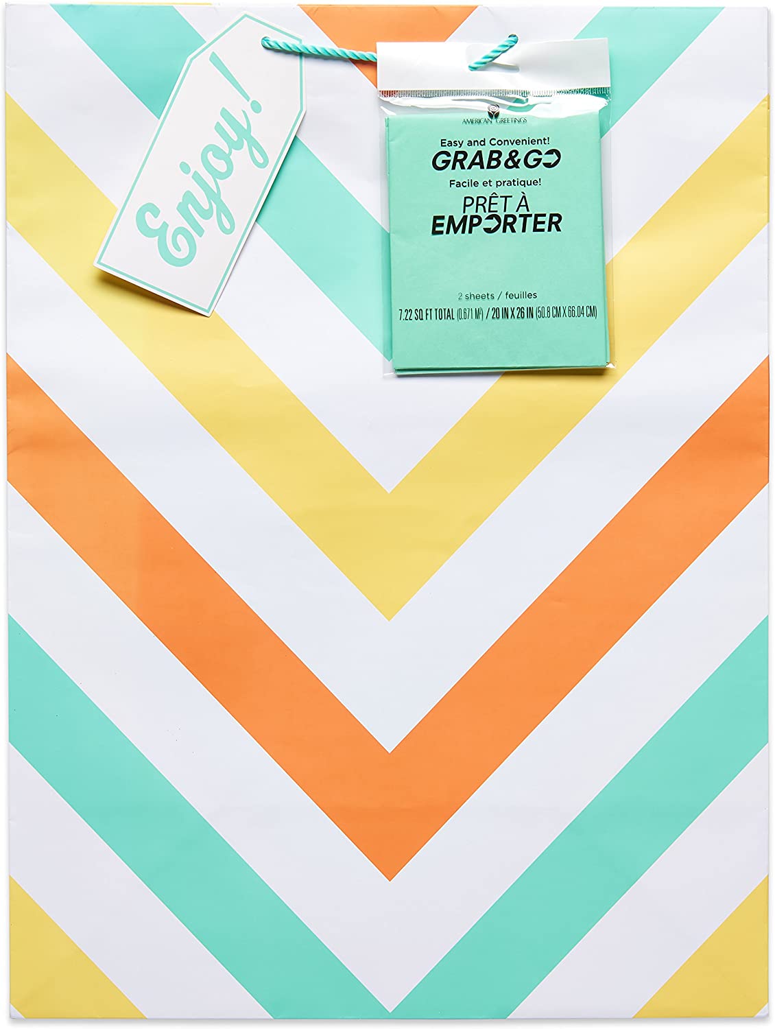 Wrap your present with style! the bright and colorful bag design features a trendy Chevron pattern with mint-green cord handles and a fun gift tag. The Jumbo bag size makes it perfect for clothing, home goods, electronics and other large or hard-to-wrap gifts. It's sure to brighten anyone's birthday, holiday or other celebration!.