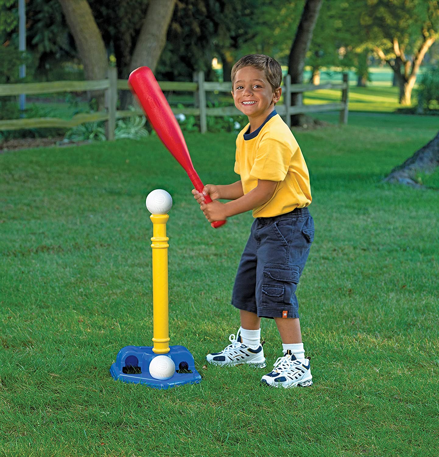 Your child can practice their swing while developing hand and eye coordination skills with American Plastic Toy’s T-Ball Set. This is a great toy for kids to play with on their own or with friends. As your child grows, you can adjust the tee’s base to accommodate their height. Each purchase includes a bat with two plastic balls. With the T-Ball Set from American Plastic Toys, your child will be sure to improve their swinging skills just in time for their first game.