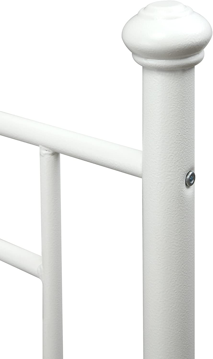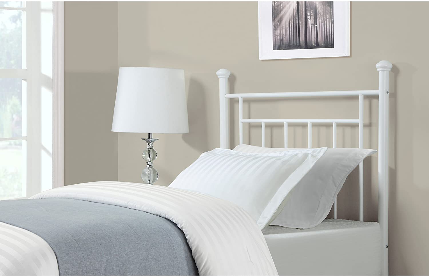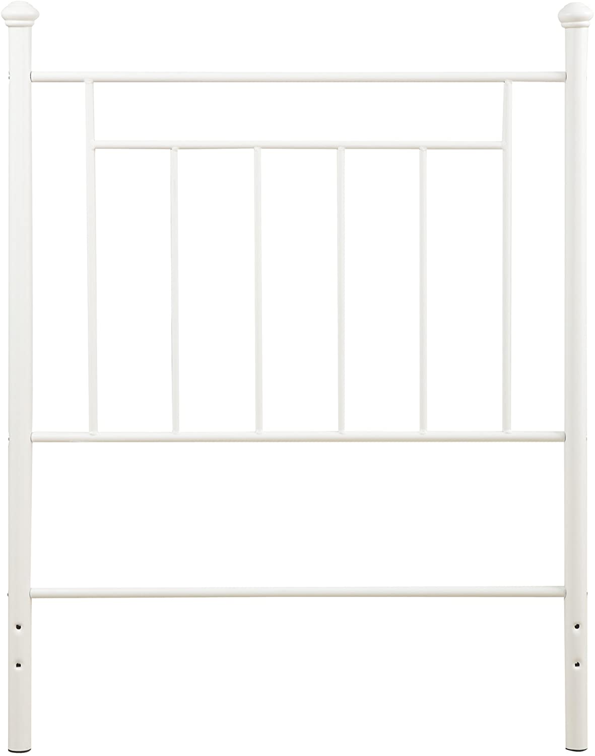 With elegant, simple lines, the Twin Headboard in white will be a welcome addition to any bedroom. Featuring an Antique Nickel finish and decorative finials, the contemporary styling is appropriate for both children and adults. Combine the Metal Headboard with a Twin bed frame and Twin-sized mattress to complete the bed.
