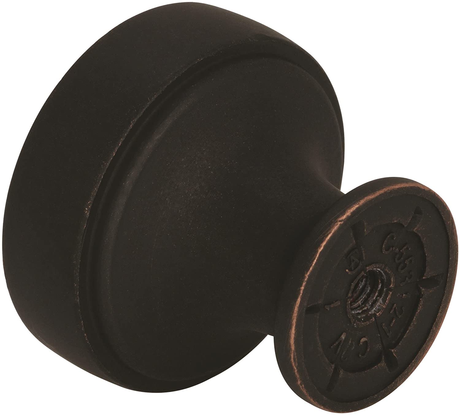 The Amerock BP55312DOB Highland Ridge 1-3/16 in (30 mm) Diameter Knob is finished in Dark-Oiled Bronze. The Highland Ridge collection creates a sense of contemporary class where cottage meets chic. Dark-Oiled Bronze has a much darker base than an Oil Rubbed Bronze, coupled with the same copper accenting of all of the highlights found in each unique design. Amerock offers a complete line of decorative and functional cabinet hardware, bath hardware, hook and rail and wall plates. Amerock’s award-winning decorative and functional hardware solutions have built the company’s reputation for chic design accessories that inspire homeowners to express their personal style. Available in a variety of finishes and styles, Amerock offers high quality designs at affordable prices. Always Creating. Always Timeless. Always Amerock.