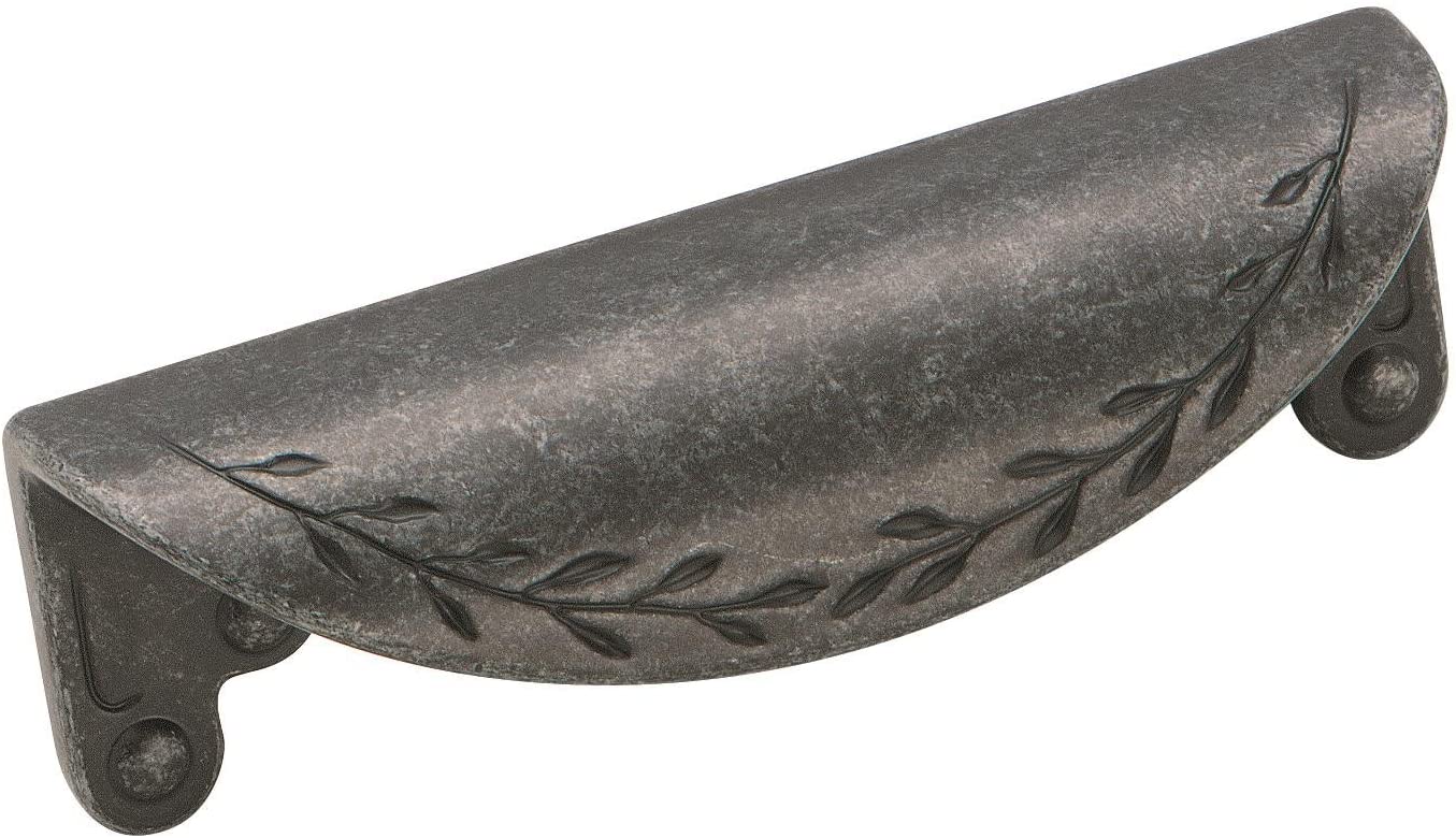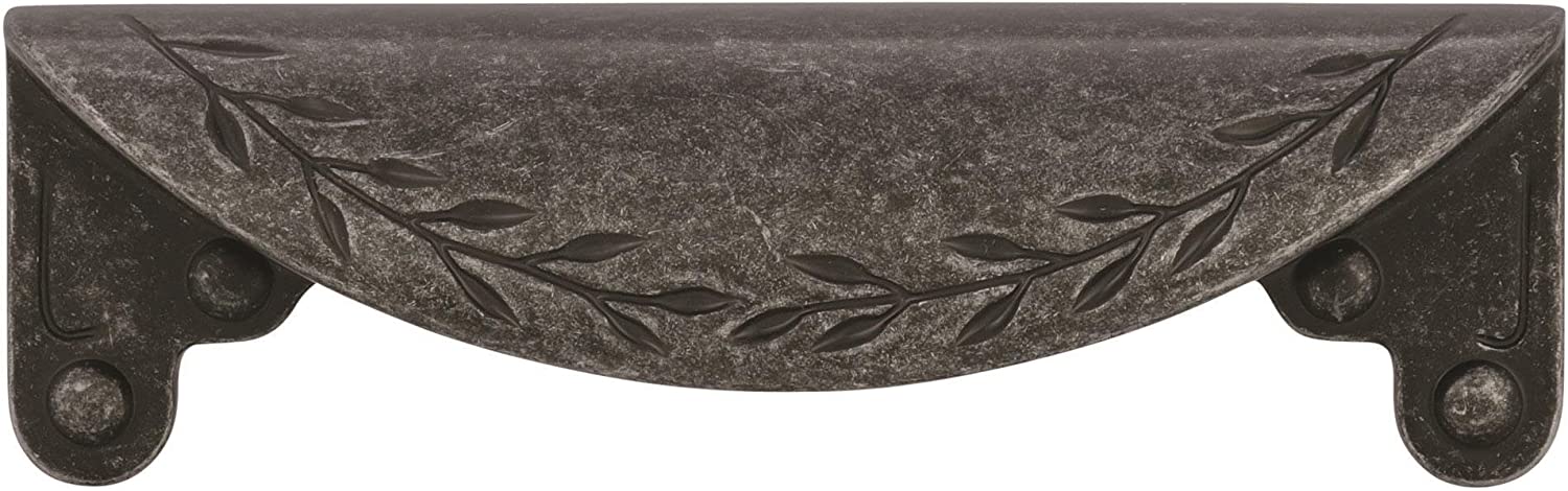 The Amerock BP1582WID Nature's Splendor 3 in (76 mm) Center-to-Center Cup Pull is finished in Wrought Iron Dark. Hand-crafted and intricate design influenced by nature inspire the Nature's Splendor Collection. Wrought Iron Dark is a tonal finish that combines a dark black color with subtle hints of gray, giving each design interest and dimension. Amerock offers a complete line of decorative and functional cabinet hardware, bath hardware, hook and rail and wall plates.  Amerock’s award-winning decorative and functional hardware solutions have built the company’s reputation for chic design accessories that inspire homeowners to express their personal style. Available in a variety of finishes and styles, Amerock offers high quality designs at affordable prices. Always Creating. Always Timeless. Always Amerock.