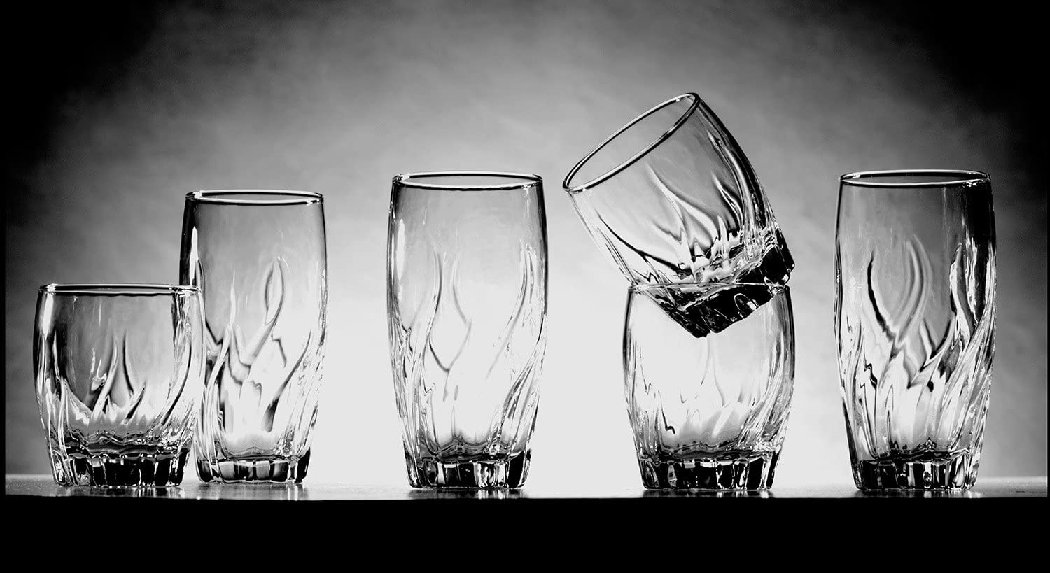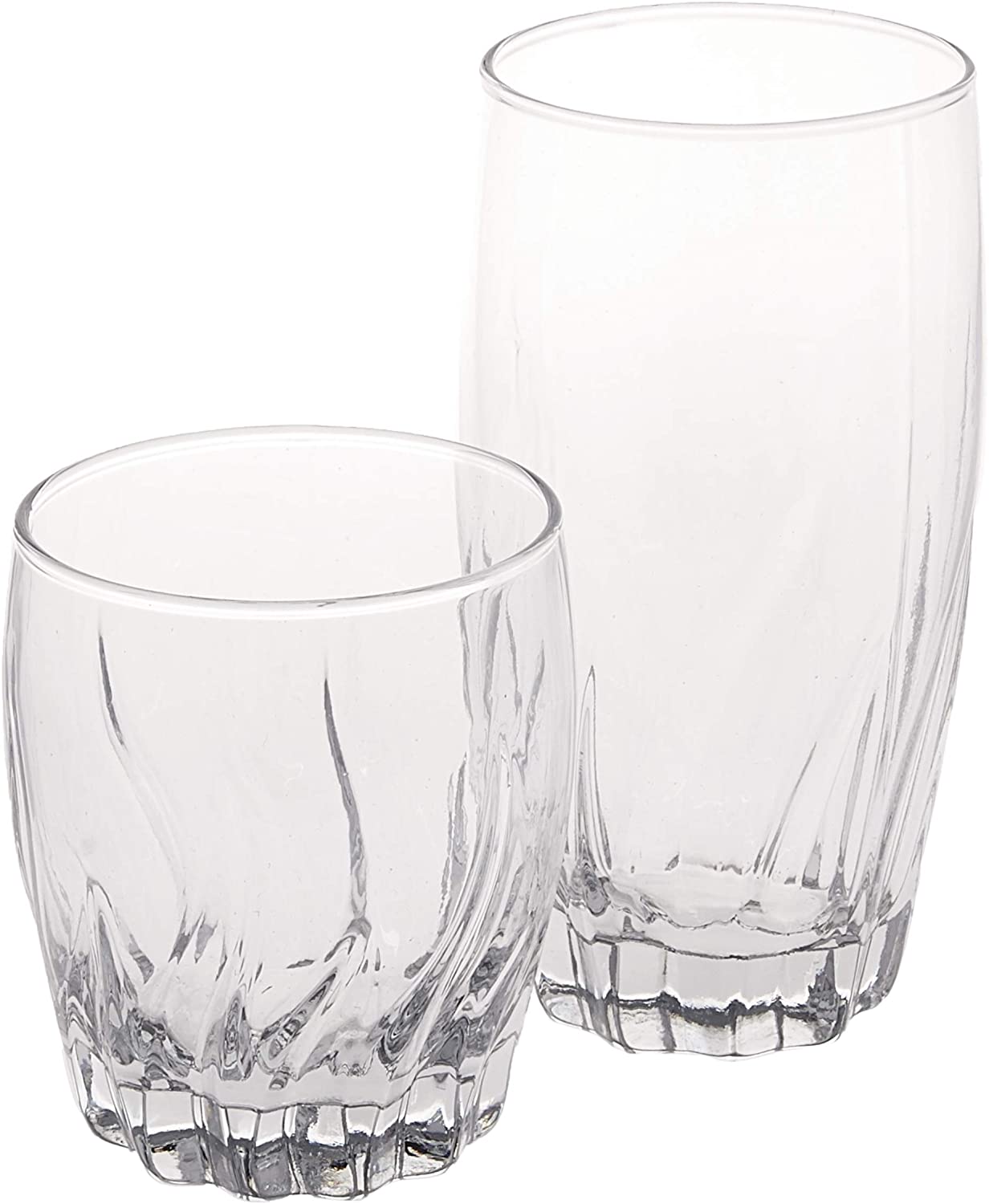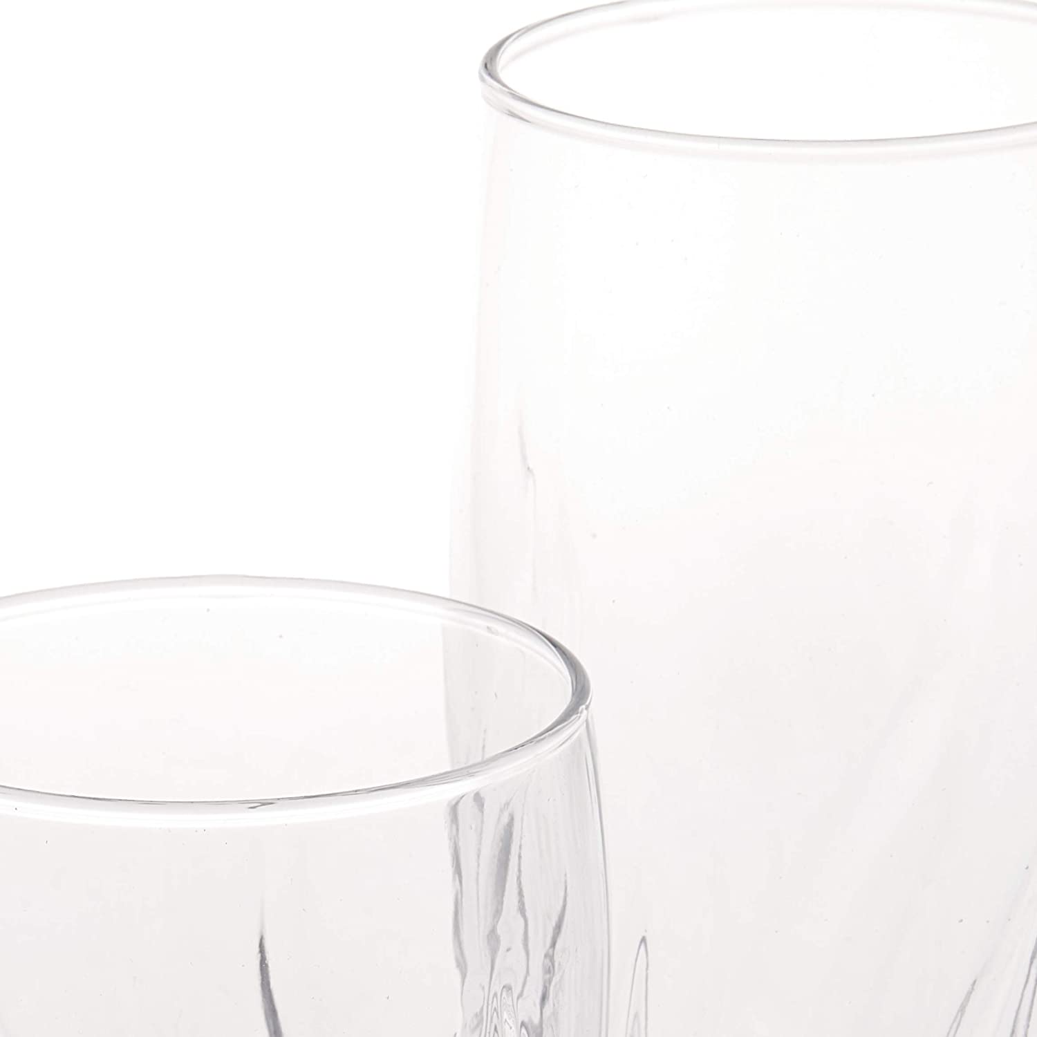 - DURABLE: This set of glasses is fit for any lunch or dinner. Its weighted design was engineered to prevent spills while its clean, modern shape keeps it always in style.
