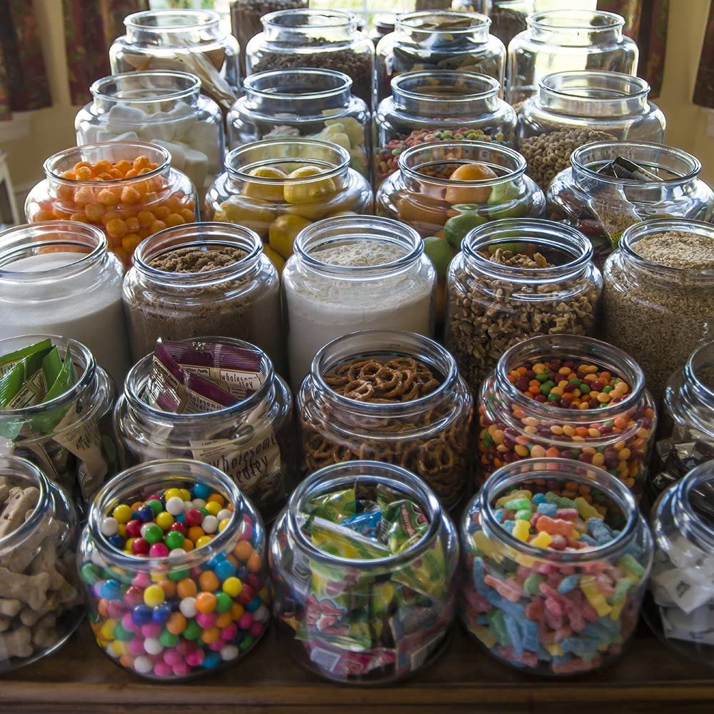 - USE: These glass jars are perfect to store and display all manner of dry goods including flour, cookies, rice, coffee, spices, candy, and much more.