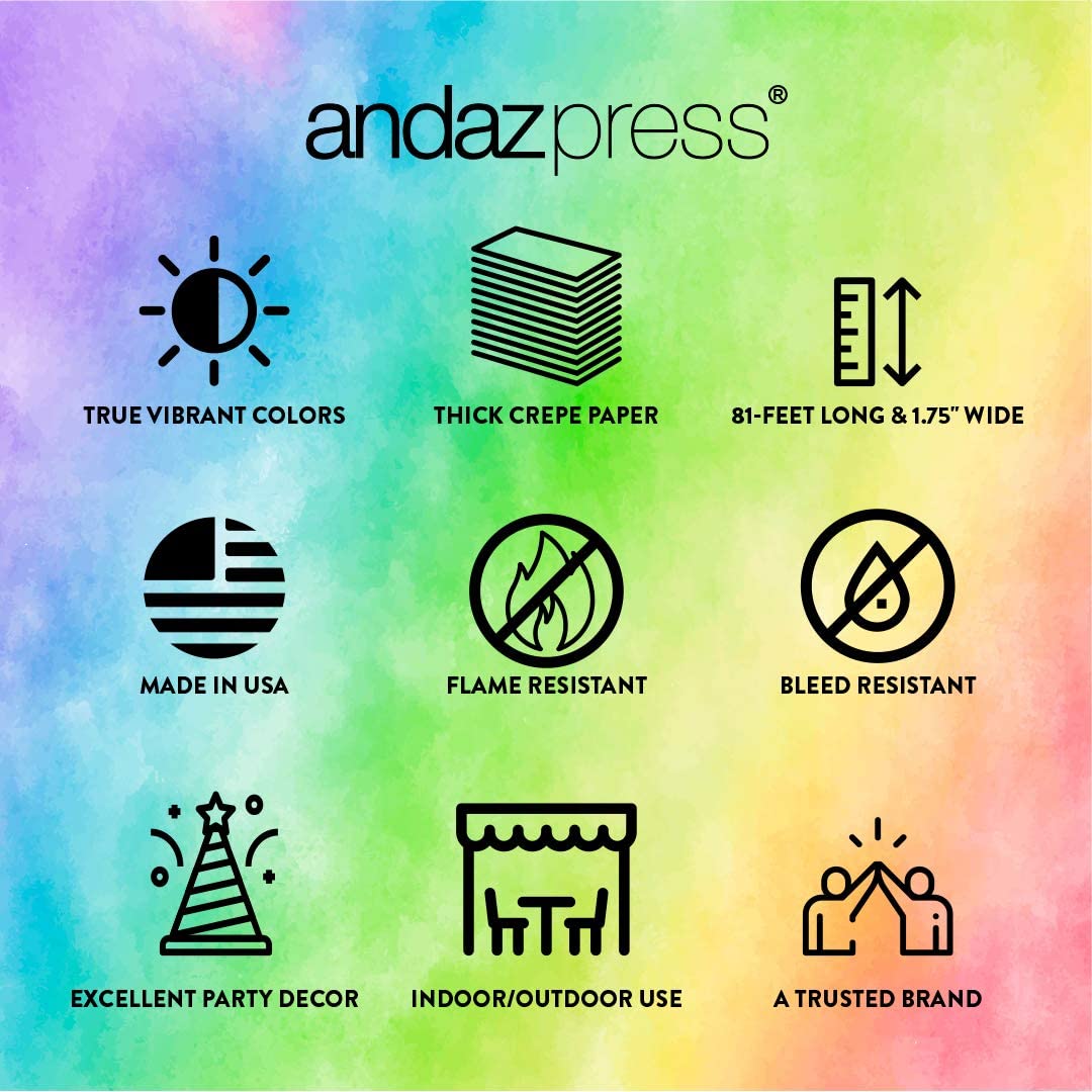 - INCLUDES: 3 rolls of crepe paper streamer decorations, designed by Andaz Press.