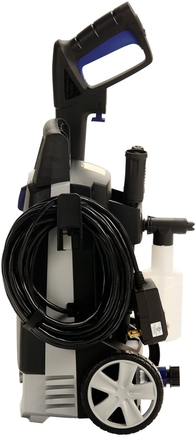 AR112S–1500 PSI/1.4 GPM - Powerful-Durable-Reliable. AR Blue Clean power washers have 50 years of pump building experience through the Annovi Reverberi brand! The 112S is an updated version of AR Blue Clean’s popular 112 model. The 112S generates a powerful 1500 PSI, up to 28 times more pressure as a typical garden hose while reducing water consumption by over 80%. For effective high-pressure cleaning, attach the variable spray nozzle lance. Change the HP spray pattern from a wide fan to a concentrated “pencil-point” HP spray by simply rotating the nozzle head or anywhere in between. Detergent application is made easy with the separate detergent bottle that attaches directly to the spray gun. This power washer is much quieter, lighter and easier to use than a standard gasoline pressure washer and is certified by CSA International for safety. The AR Blue Clean 112S-1500 PSI electric power washer is perfect for light to medium-sized residential projects and will achieve excellent cleaning results. Experience the AR difference; you will be glad you did! • 12 Amp/1.3 HP Universal Motor and Tri-Axial Pump delivering 1500 PSI/1.4 GPM • Spray gun designed with Quick-Coupler fittings for easy installation/removal of the HP hose, lance & detergent bottle • Variable spray nozzle lance for a variety of cleaning applications • 20’ High Pressure hose with coiling strap • Integrated handle for easy mobility and compact storage • Cord hook for convenient power cord storage • 35’ power cord featuring an Auto-Reset GFCI module • 14 oz. detergent bottle for easy detergent applications • On-board storage for lance and detergent bottle • Total Stop System (TSS) – Automatically shuts off the power washer when trigger is not engaged to prolong the life of the pump • 1 Year “Bumper-to-Bumper” Warranty • Best-in-Class Customer Service Specifications: Max GPM- 1.4 Max PSI- 1500 HP- 1.3 Weight- 19 Amps- 12 Temperature- 122 HP1- 1.3 Motor Type- Universal 120V 60Hz