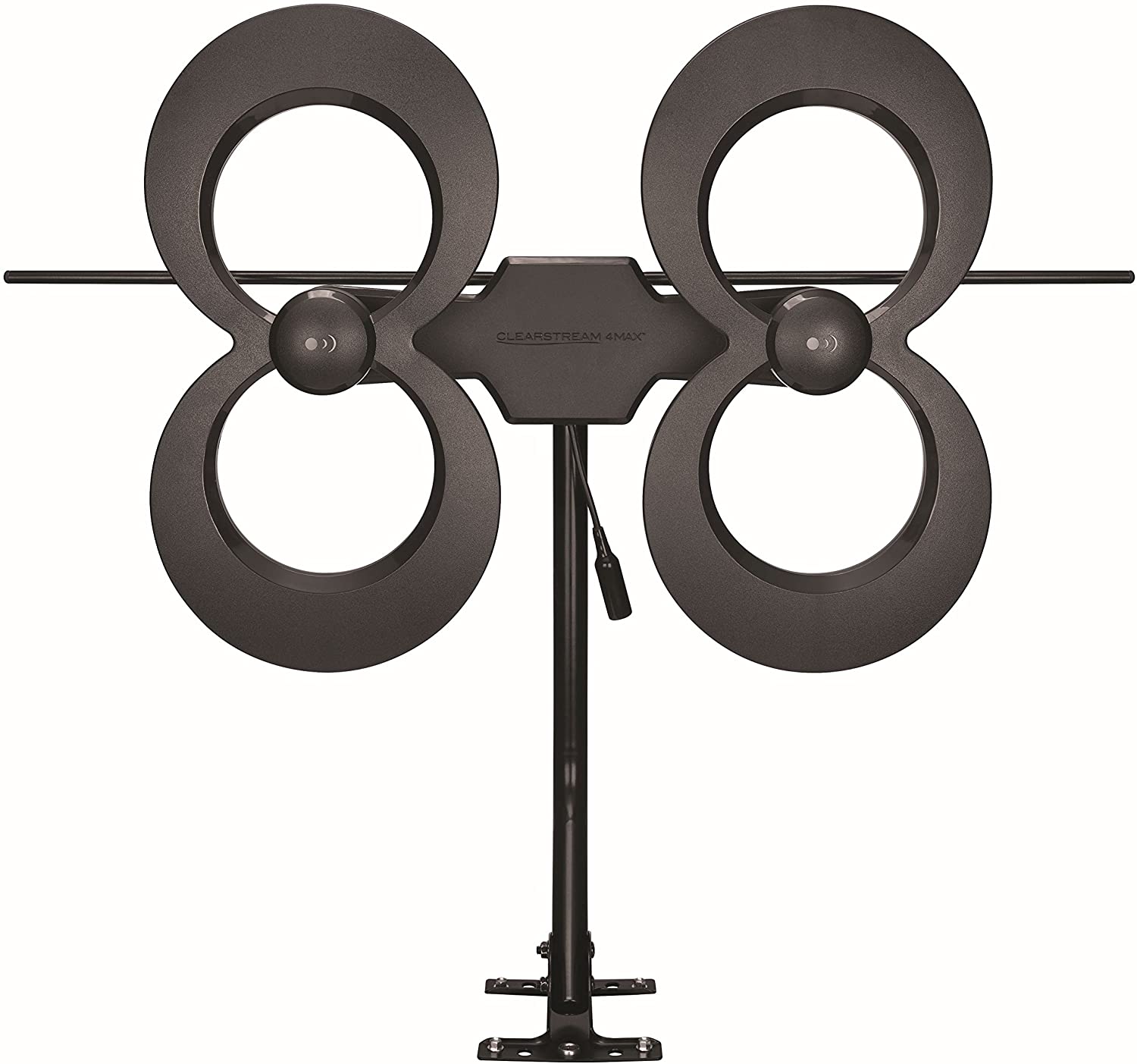 The clear stream 2Max uses patented technology to receive TV signals 60 miles away from broadcast towers. With quick-connect parts, the assembly only takes a few minutes. Its unique integrated diplexer for UHF and VHF reliability, receives broadcast signals through heavy foliage or roofing materials in your attic. The clear stream 2Max is whole home ready, so if you had satellite or cable service, the coaxial cable needed to send the antenna's signal to all your TVs is already installed. There are also many advantages to an outdoor antenna over an indoor antenna. An outdoor antenna will have fewer obstructions and less interference (noise) from electronics devices in your home. The clear stream 4Max HDTV antenna comes with a lifetime warranty on parts to assure you of the superior build quality and durability. Includes clear stream 2Max antenna, 20” J-Mount, all-weather mounting hardware, sealing pads, and instructions (coaxial cable sold separately).