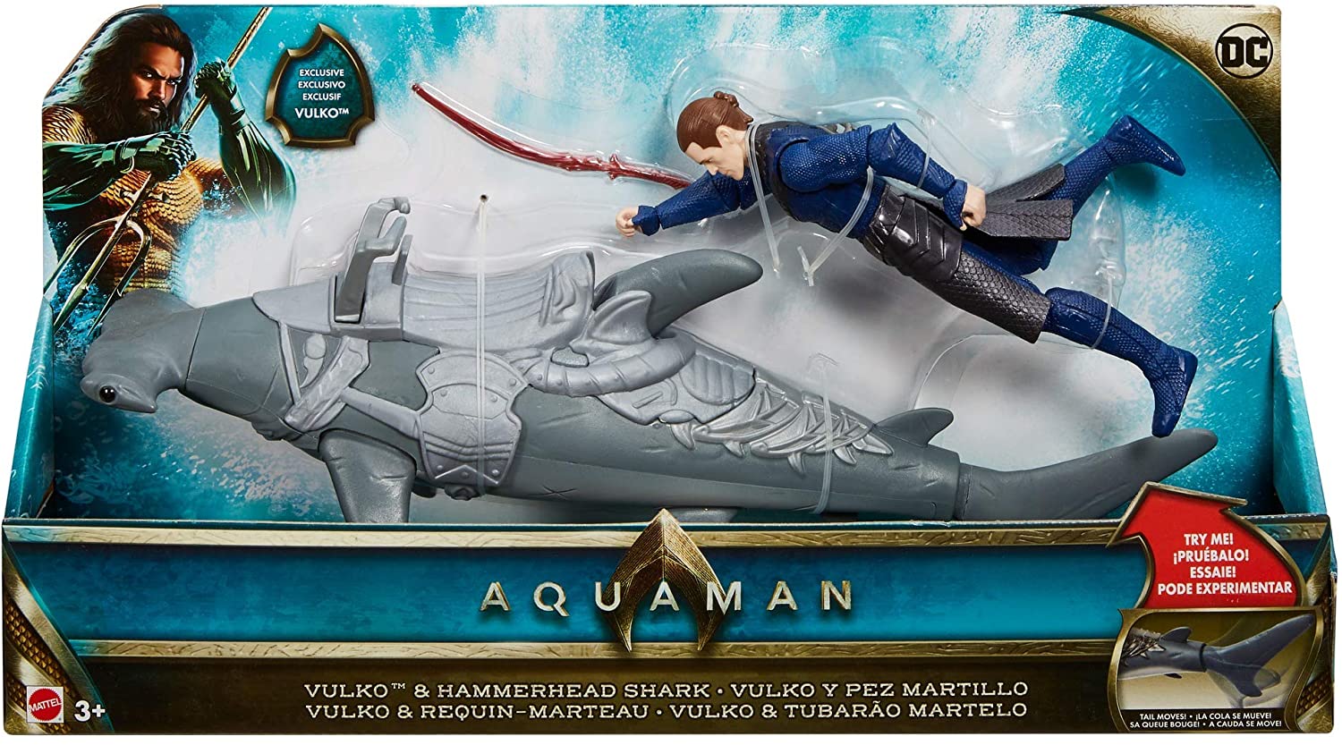 Aquaman must battle his greatest foes to reign on sea and land! Recreate epic movie battles with an exclusive Vulko and a Hammerhead Shark! As mentor to the Super Hero, Vulko is a powerful force of good. His highly detailed, exclusive 6” scale action figure has 14 points of articulation, authentic costume, and comes with Vulko’s signature sword. The authentic sea creature has true-to-movie designs, armored skin and a moveable fin and tail. You can also choose Aquaman and the Brine Trooper! Together they will hunt and defeat Black Manta! Each creature and figure pack sold separately, subject to availability.