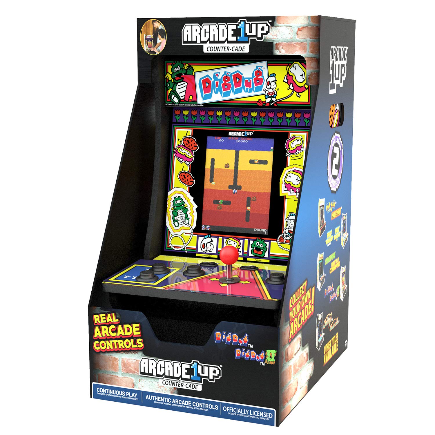 Brace yourself to be plunged back in time to an era of adrenaline pumping, old school fun with Arcade1Up as it brings iconic gaming back to you. Whether you are a retro junkie or curious to check out the hype this is the perfect way to enjoy arcade play within your home, dorm room or office.Arcade1Up Countercades are available in multiple exciting versions that feature a table top design with commercial grade construction and coinless operation. All the machines feature original artwork of all-time iconic games. With immersive full-color hi-res displays and sounds, and full size joysticks and control buttons setup, you are looking at endless hours of gaming!Arcade1Up Dig Dug:Relive the glory days of arcade gaming in the comfort of your own home with Arcade1Up's Dig Dug at home Countercade!Jump back to the 80s, grab the joystick and prepare yourself for Arcade1Ups Dig Dug Countercade. You are Dig Dug, the underground miner. Dig your way underground through the earth and destroy the meanies who lurk below and uproot the prized produce. Destroy the meanies by pumping them up until they burst or by dropping boulders on them, but be careful as these meanies can transform into spooky ghost that will appear out of nowhere to attack.Specifications:Table top designItem Dimensions: 18.5 H x 11.25 W x 12.25 L / ItemWeight: 11.10lbsPackage Dimensions: 21.5 H x 14.5 W x 13.5 D / Package Weight: 13.80lbsMaster Carton Dimensions: 22.5 H x 15 H x 15.5 W / Master Carton Weight: 17lbsContainer Loading: 20GP: 300CTN / 40GP: 620CTN / 40HQ: 696CTN2 Games in 1 (Dig Dug & Dig Dug ll)Upgraded 8" Color LCD screenReal feel arcade controlsCommercial-grade constructionOriginal ArtworkCoinless operationOwner can adjust the volumeOn Screen Game Selection MenuPlugs into an AC outletLegal:DIG DUG&1982 BANDAI NAMCO Entertainment Inc.DIG DUGll &1985 BANDAI NAMCO Entertainment In