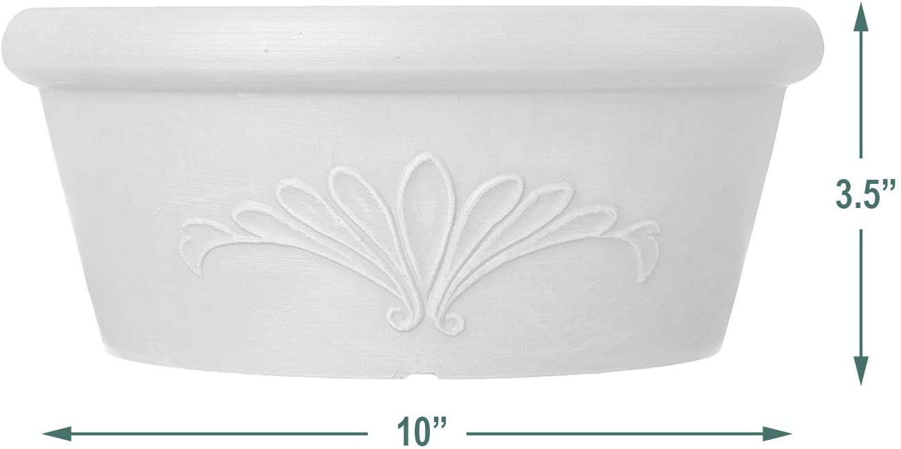 Part of our award-winning PSW Pot Collection, the Bulb Pan from Arcadia Garden Products is made from a mix of recycled plastic, stone powder, and wood dust. This moderately shallow container is ideal for planting succulent gardens since there is no need to provide abundant space for deep roots. Also good for bonsai and combination foliage gardens, this pan is great for both indoor and outdoor use. For outside use where drainage is likely to be necessary, the bottom of the bulb pan indicates the ideal area for optional drilling. The winning combination of recycled ingredients in the PSW line makes this an attractive, eco-friendly product that is also weather resistant and easy to clean. Available in four colors and three sizes, the bulb pan is attractive and features a stylish, raised floral embellishment on one side. The sturdiness of this bulb pan is admirable, and its significant feel and look make it a thoughtful gift for those who enjoy plants and planting. Because it coordinates with other PSW containers