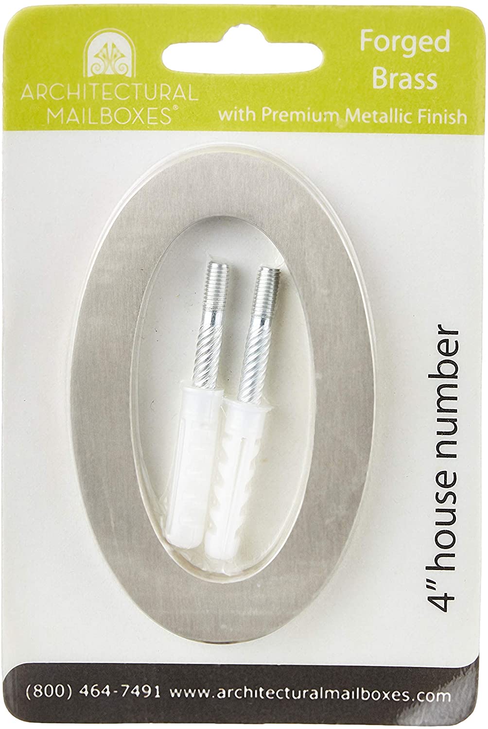 Architectural Mailboxes' brass 4 in. floating house numbers are hand finished with a premium finish. The house numbers can be mounted flush with the wall, or you can leave the mounting screws partially out of the holes for a floating number effect. No holes or unsightly screw heads are shown.