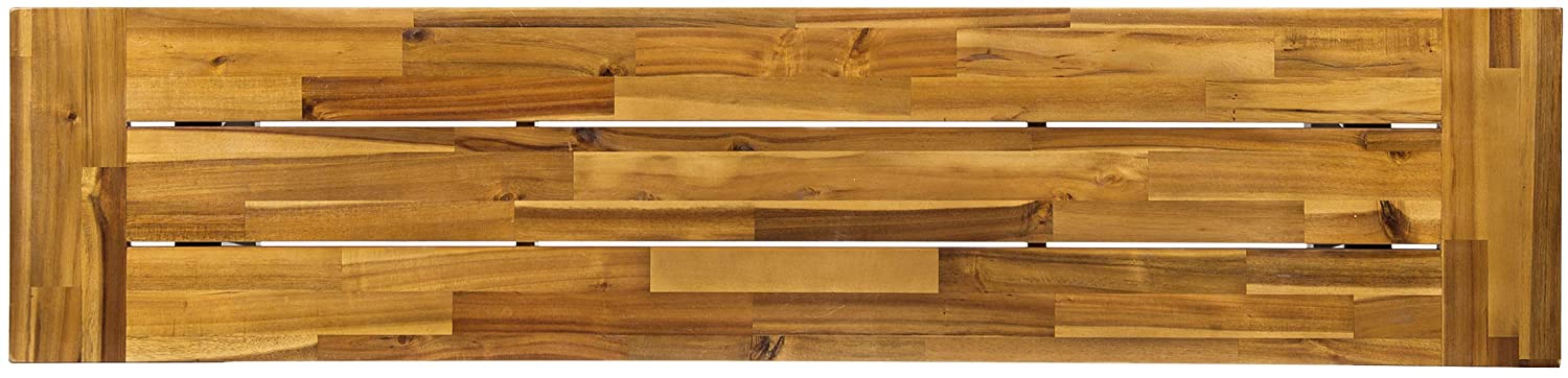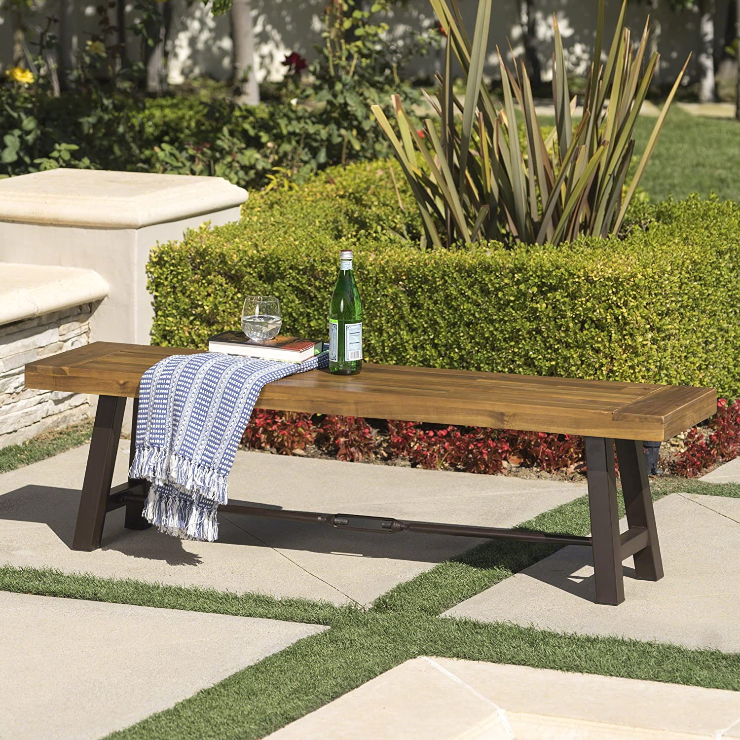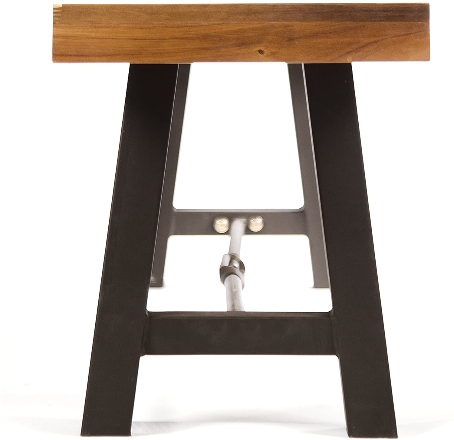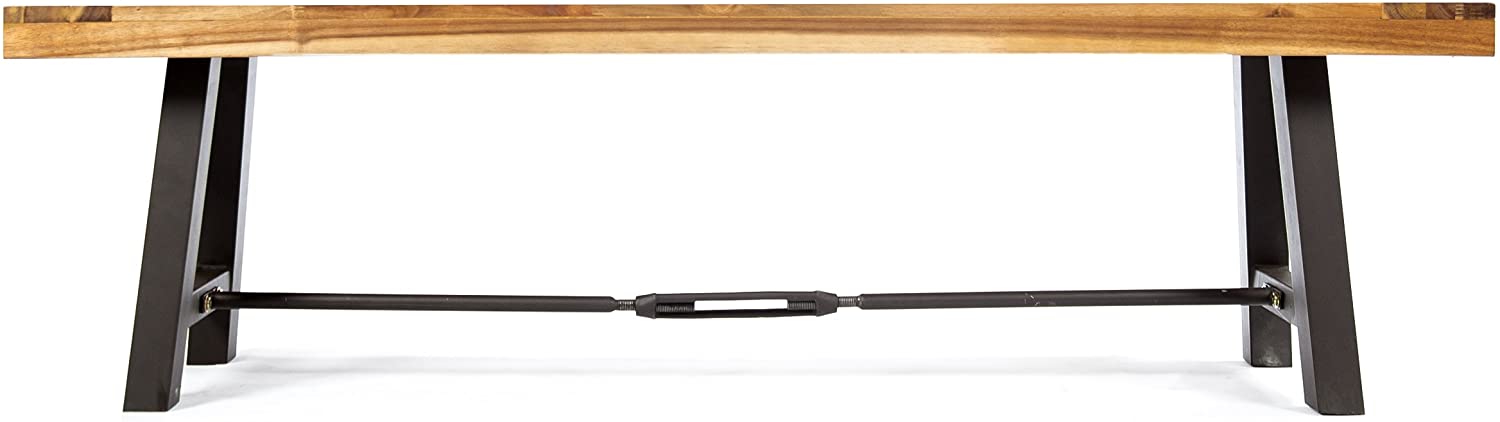 This bench is the perfect accompaniment to your outdoor dining table. Sturdy, durable, and attractive, this is a smart purchase you won’t regret. Made from the highest quality aluminum cast to precision specifications. Includes: One (1) Bench Material: Acacia Wood Frame Material: Metal Finish: Teak Frame Finish: Rustic Metal Assembly Required Hand Crafted Details Dimensions: 14.50 inches deep x 63.00 inches wide x 17.75 inches high