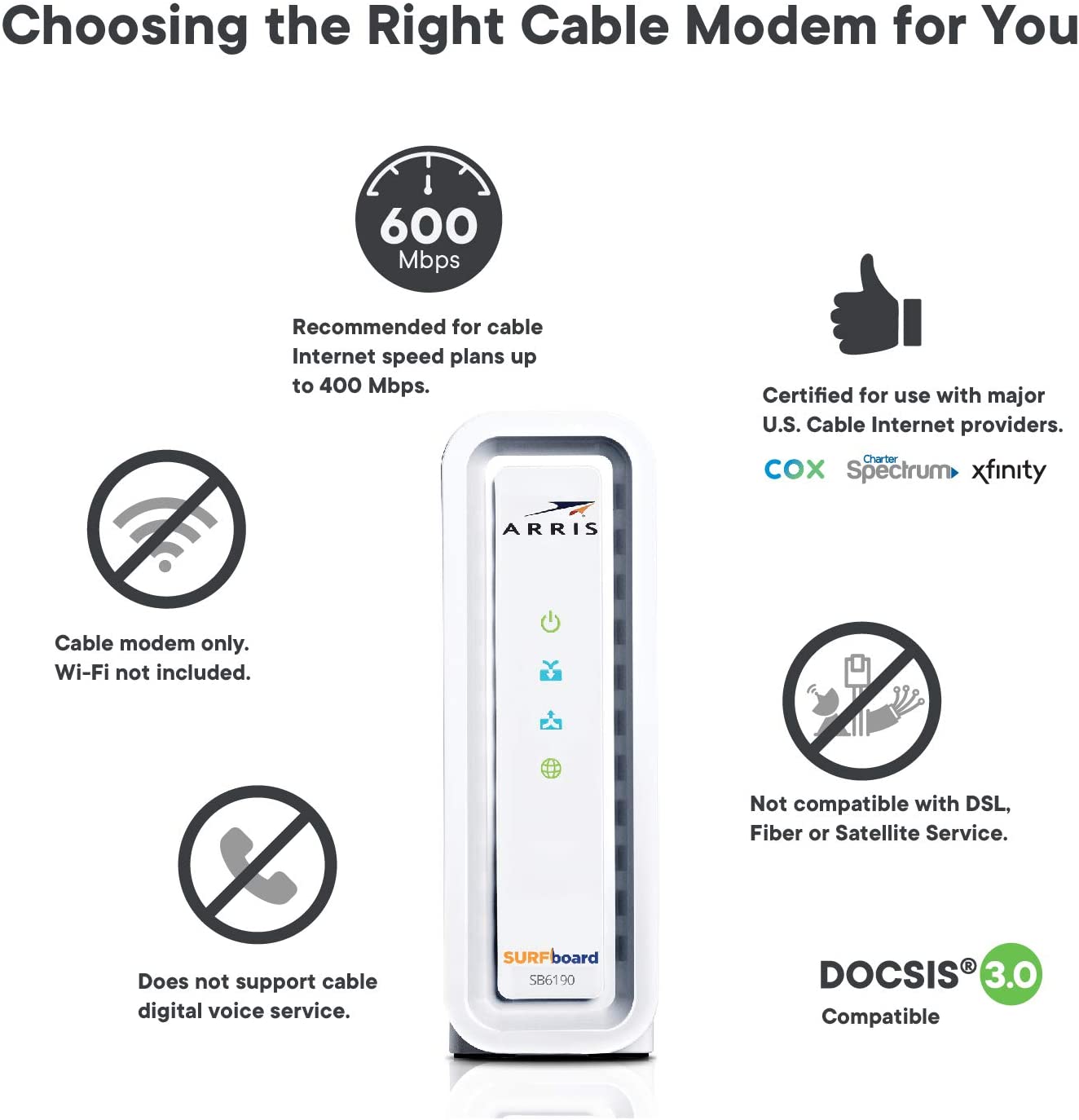 - DOCSIS 3.0 Cable Modem best for cable internet speed plans up to 600 Mbps