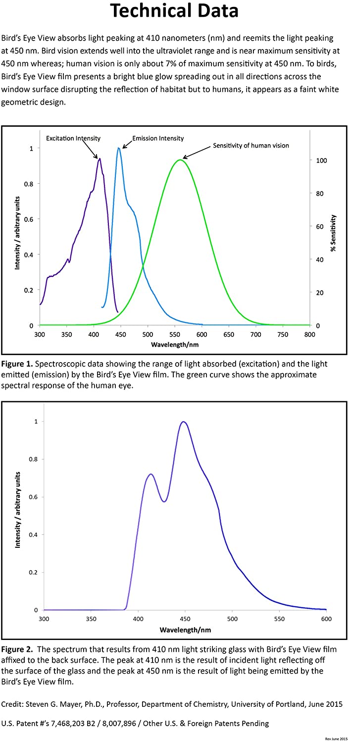 Bird’s Eye View window films break up the seamless reflection of habitat to divert wild birds from striking the glass.