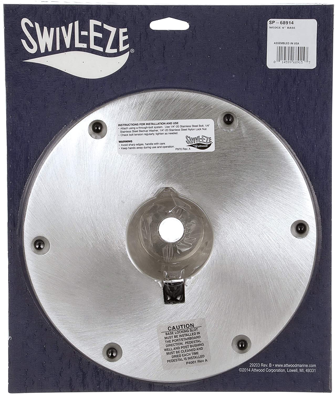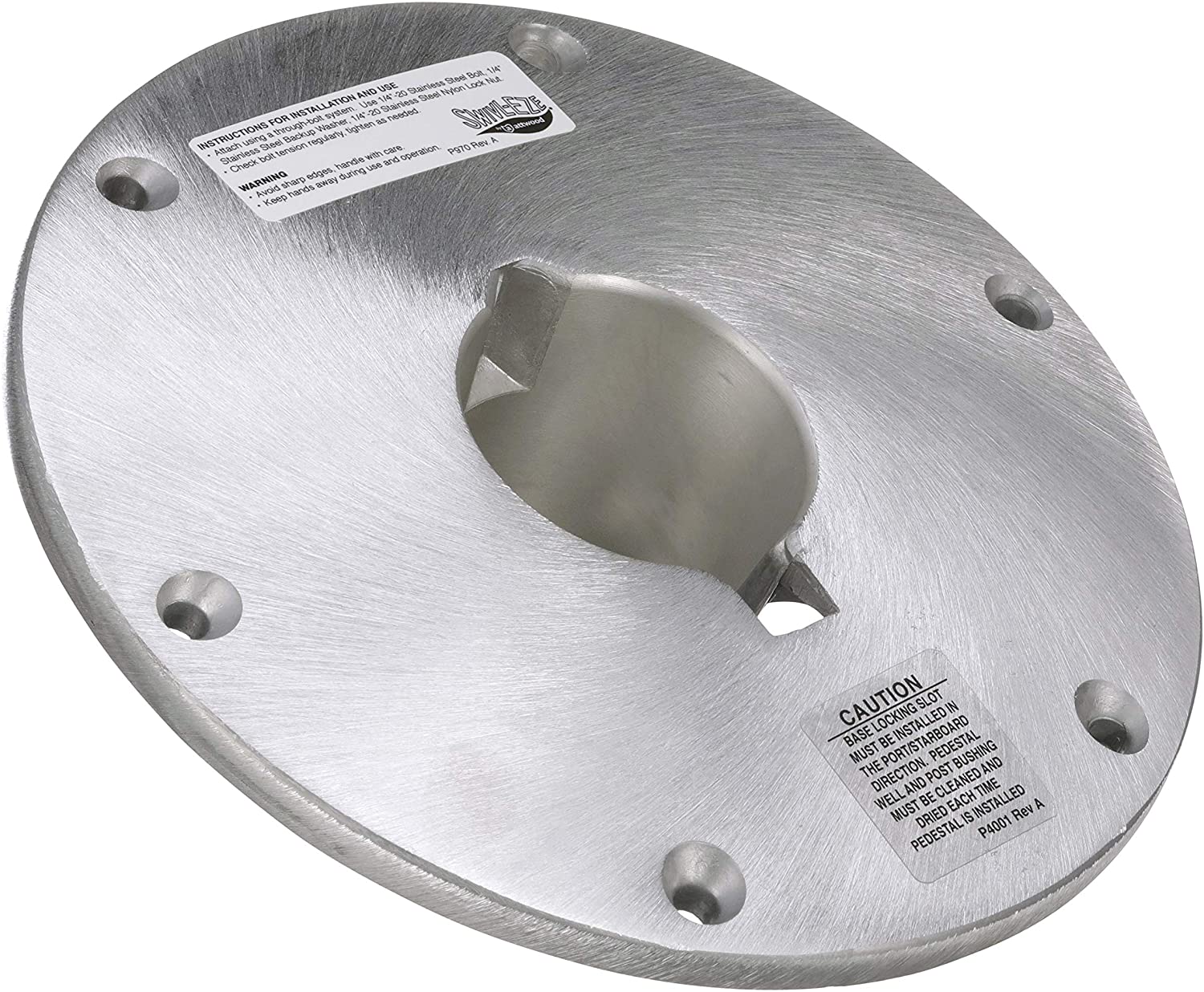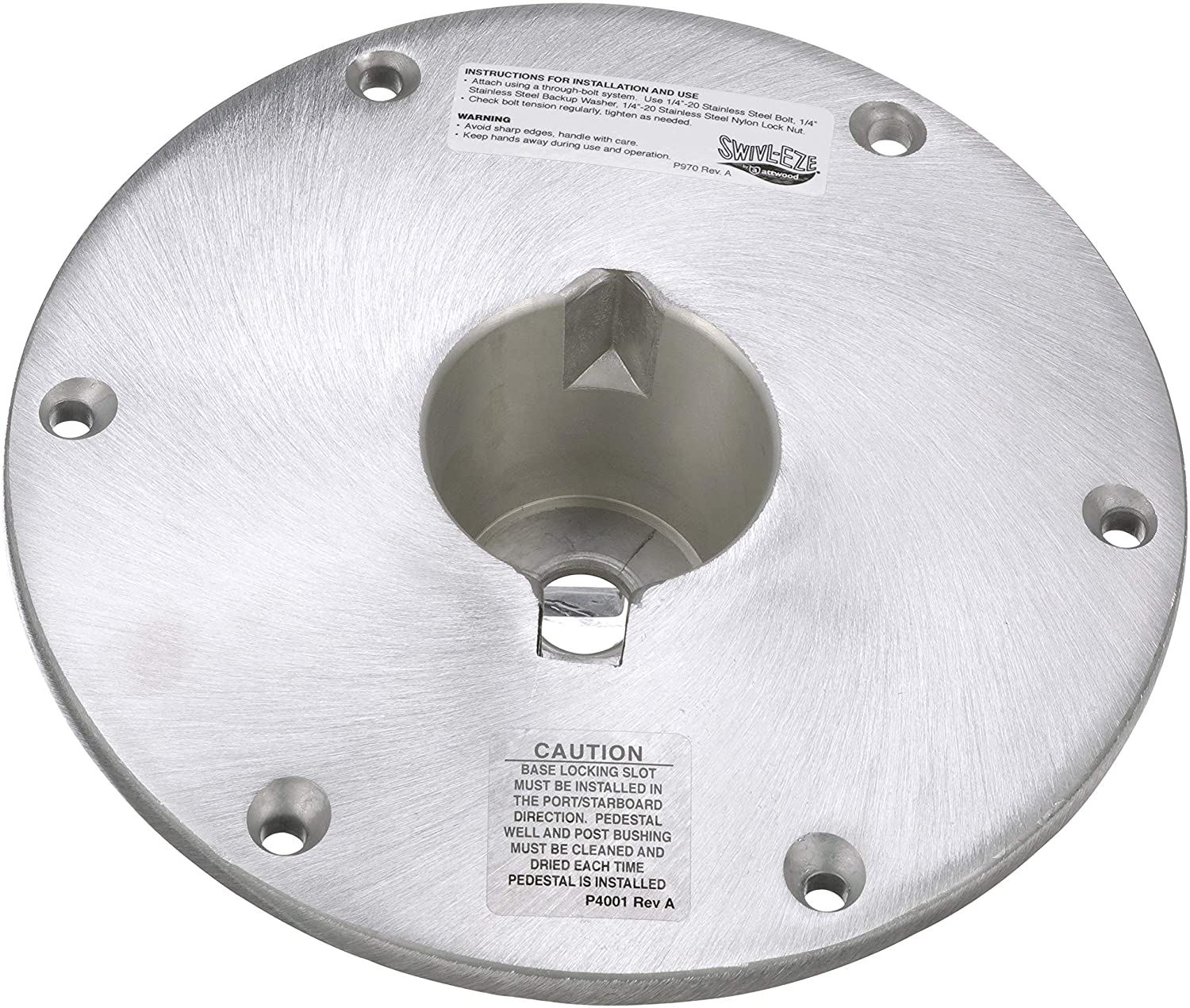 This Attwood Wedge 2-Inch Base Plate provides a dependable base for a seat mounting system that uses components such as Wedge Extension Posts (sold separately). This round, brushed aluminum Base Plate has a 9-inch diameter, and it installs using six fasteners. It requires a 3.25-inch-diameter mounting hole, and the plate extends to a depth of 2 inches below the deck. It meets ABYC Code AO standards. Attwood Corporation has been an award-winning leader in engineering, testing, and manufacturing of the highest quality marine products for over 100 years. We deliver safe and reliable lighting, fuel systems, water systems, seating & pedestals, swim ladders, custom upholstery, and general marine accessories that are easy to install and meet regulatory compliance.
