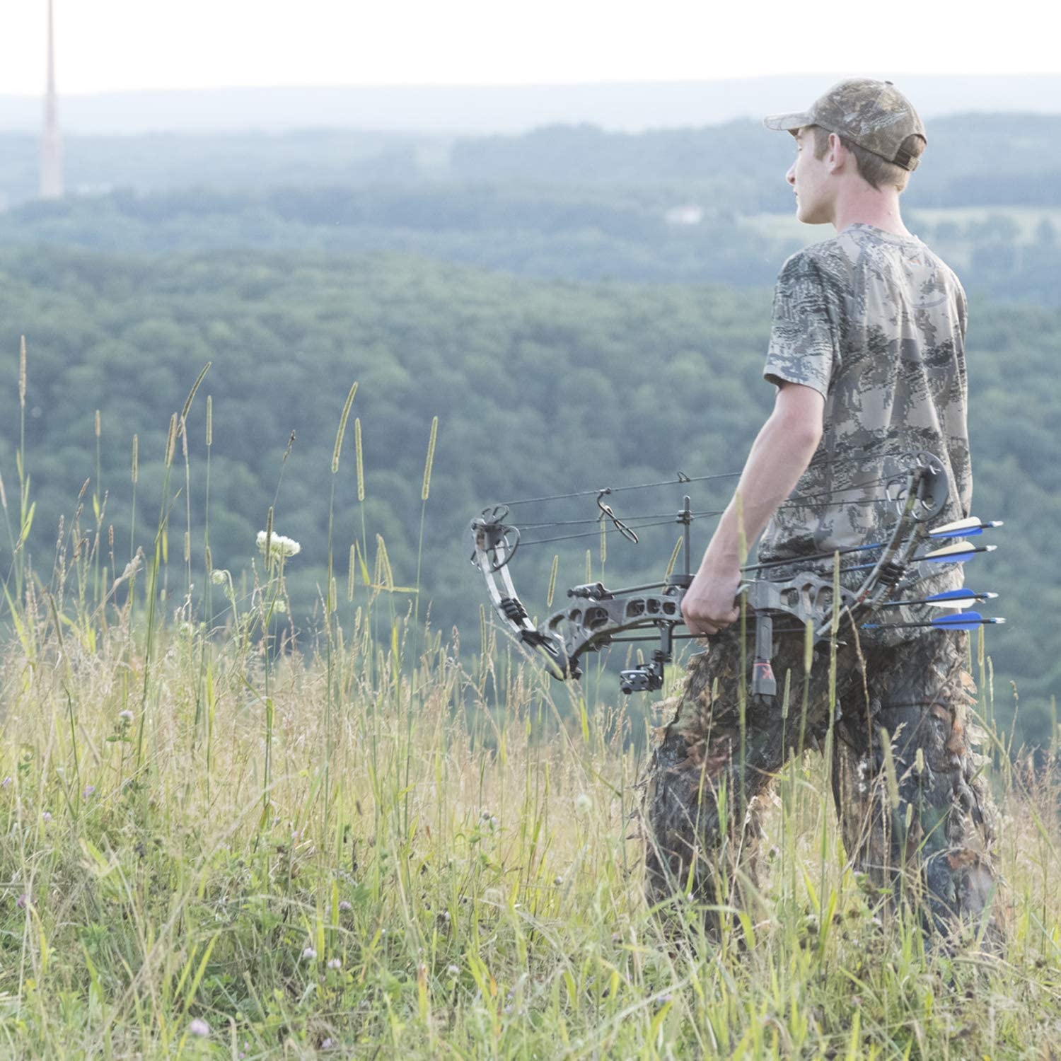 Adult compound bow featuring a high strength aluminum-magnesium alloy riser, high modulus fiber glass split limbs, durable limb pockets, and a smooth draw cycle. Peep sight and D-loop pre-installed. Axle to axle: 36", Brace Height: 7.5", Draw Weight: 45-60 lbs, Draw Length: 18"-32", Bow Weight: 3.9 lbs. Package includes sight, rest, stabilizer, and quiver. Audax OX Adult Compound Bow Package, NexGen Camo Pattern, Right Hand
