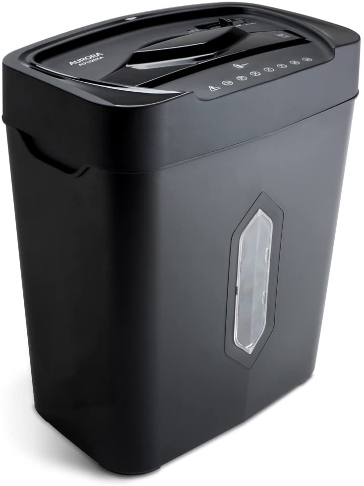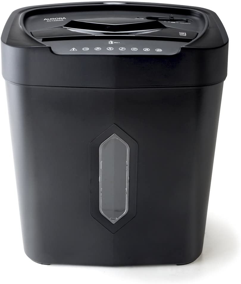 The Aurora AU1220XA 12-Sheet crosscut paper/ credit card shredder with 5.2-Gallon wastebasket is the perfect business and home office device to keep you safe from identity theft. The AU1220XA accepts up to 12 sheets of paper at a time and shreds them into small pieces (3/16 by 1-9/16 inches), security level P-3. In addition to paper, the AU1220XA shreds credit cards, keeping vital information from falling into the wrong hands. The throat of the shredder is 8.7 inches wide and allows continuous shredding for 3 minutes. The Item includes an integrated handle for easy emptying of the 4.5-Gallon wastebasket. Product Dimensions: 13.31" W x 8.46" L x 15.87" H