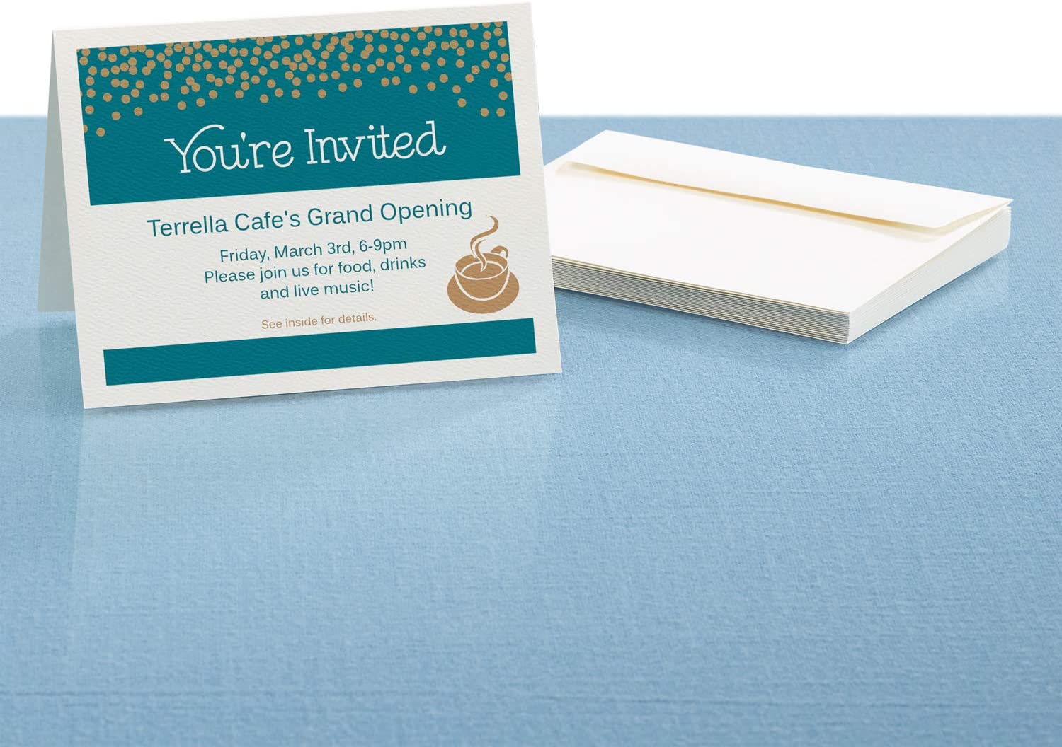 - Textured white 4. 25 x 5. 5 customizable note cards have micro perforations for easy separation and are scored for precise folding; 50 envelopes included