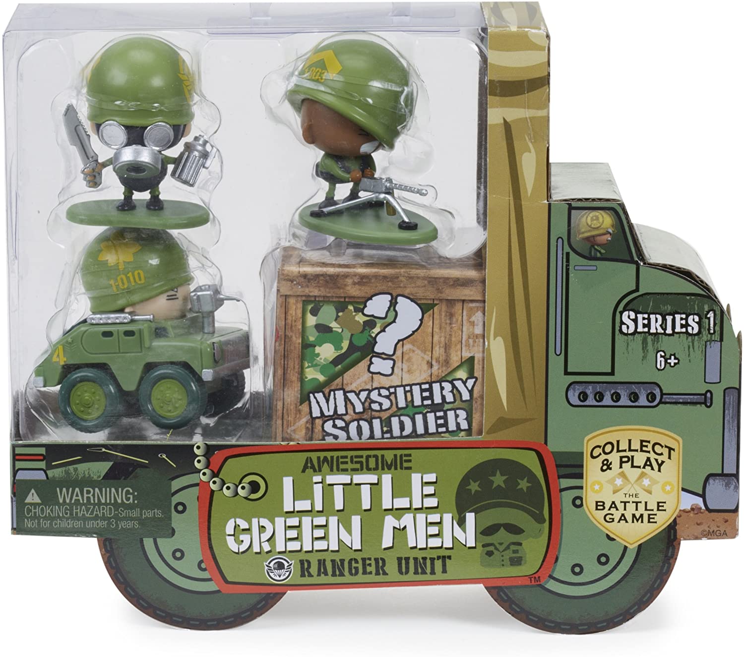 Awesome Little Green Men is the new military collectible line that combines blind-boxed soldiers and vehicles with a gameplay experience. Collect & play the battle game. Only you can unveil their stats to build the strongest troop and win the battle! starter packs feature three soldiers from the Ranger unit and a mystery Soldier. It's the perfect way to start recruiting and preparing to battle.