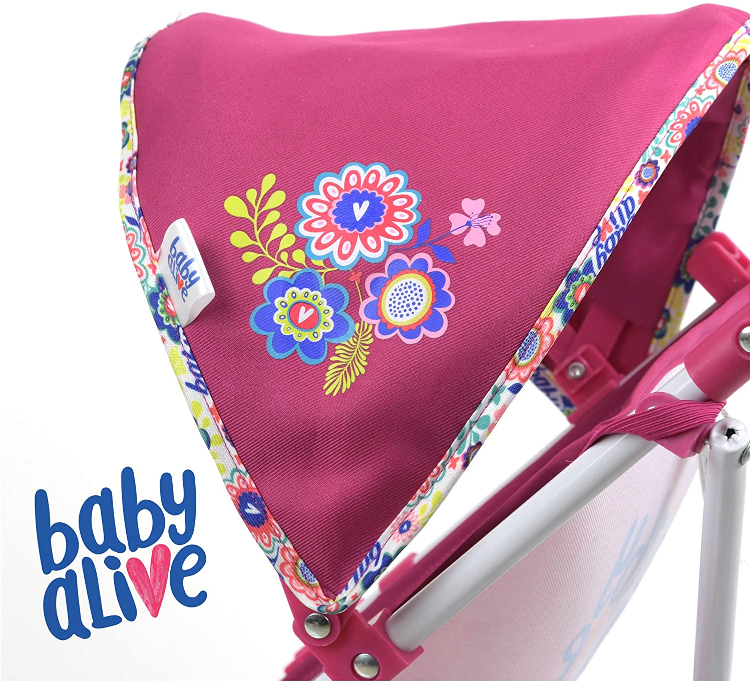 Baby Alive Doll Stroller with Retractable Canopy (D82091), Safety Harness for Baby Doll, Two-Toned Handle & Wheels, Storage Basket, Fits Dolls up to 24 inches - Foldable for Easy Toy Storage, Age 3+